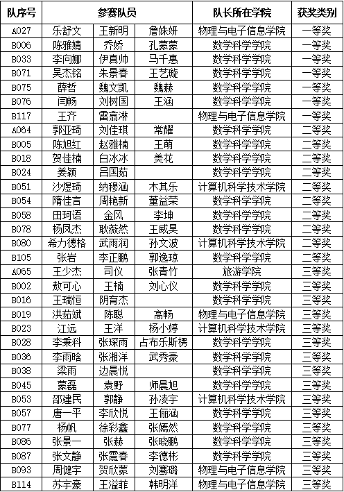 内蒙古师范大学第七届数学建模竞赛暨2024年全国大学生数学建模竞赛校级选拔赛于2024年6月22日举行。次比赛共有来自数学科学开元(中国)、物理与电子信息开元(中国)、计算机科学技术开元(中国)、地理科学开元(中国)、旅游开元(中国)、教育开元(中国)等六个开元(中国)共118支队伍参赛,组委会共收到论文110篇。经过组委会的认真评阅,共评出一等奖7组,二等奖10组,三等奖16组。具体名单如下: