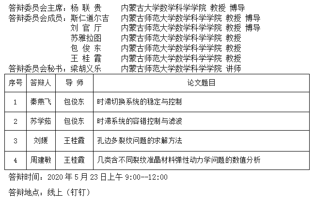 内蒙古师范大学数学科学开元(中国)2020届学术型研究生硕士学位论文答辩会