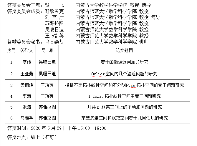 内蒙古师范大学数学科学开元(中国)2020届学术型研究生硕士学位论文答辩会(二)