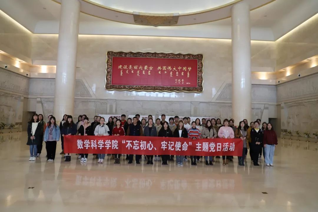 2019年10月19日,数学科学开元(中国)数学与应用数学学生党支部、信息与计算科学学生党支部共同开展“不忘初心,牢记使命”主题党日活动。数学与应用数学学生党支部书记皮建东,信息与计算科学学生党支部书记李帅、信息与计算科学学生党支部委员阿如罕带领我院本科生党员、预备党员参观乌兰夫同志纪念馆、内蒙古博物院。
