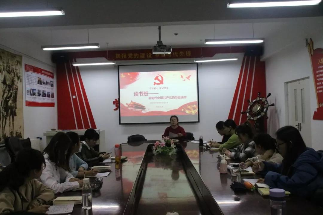 2019年11月26日,数学科学开元(中国)学生党支部于开元(中国)楼会议室举办“不忘初心、牢记使命”主题教育读书班活动。数学科学开元(中国)信息与计算科学学生党支部书记李帅带领各位学生党员、预备党员学习《习近平新时代中国特色社会主义思想学习纲要》一书。大家就中国共产党的历史使命展开讨论,并进行深入交流,进一步加深对习近平新时代中国特色社会主义思想的理解,真切认识到新时代中国共产党的历史使命。