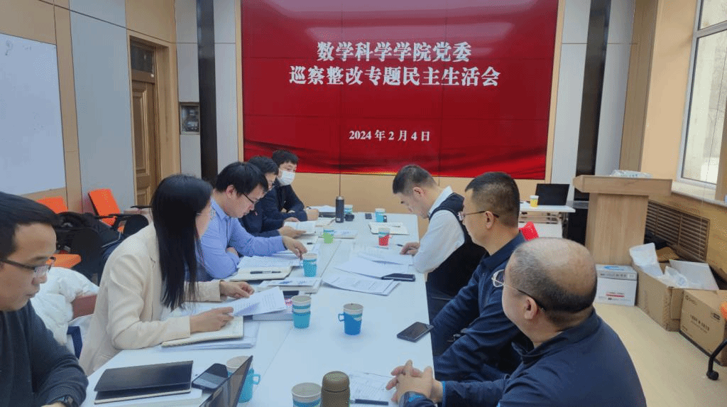 根据学校党委巡察工作统一部署和要求,2月4日上午,数学科学开元(中国)党委巡察整改专题民主生活会在文史楼114室举行。校党委巡察工作领导小组办公室主任白喜文、数学科学开元(中国)领导班子以及部分教师代表参加会议,会议由数学科学开元(中国)党委书记陈宏研主持。