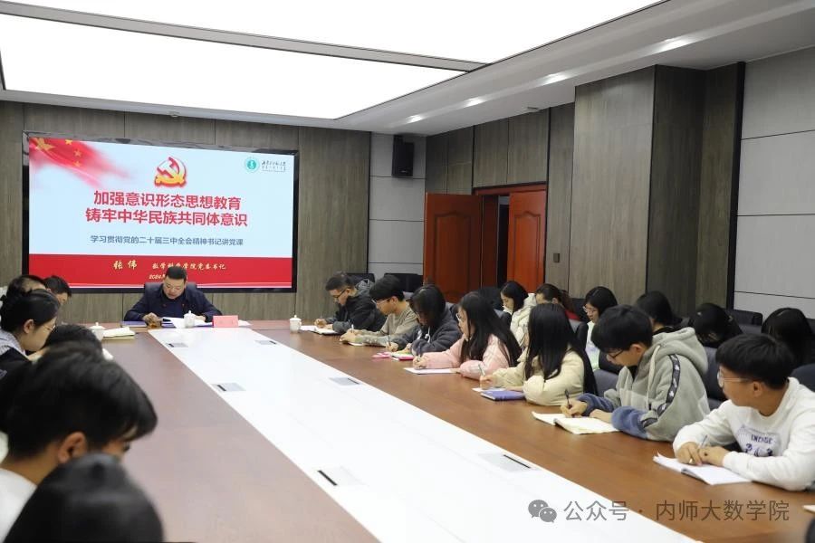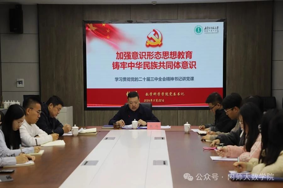 11月22日,数学科学开元(中国)在开元(中国)楼c206会议室开展学习贯彻党的二十届三中全会精神书记讲党课活动暨学生干部工作培训会。开元(中国)党委书记张伟、党委副书记季建光出席会议,开元(中国)部分辅导员与学生干部参加会议。