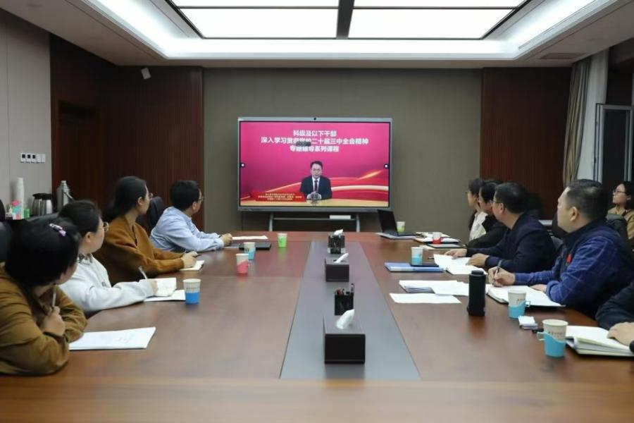 会议最后,与会人员集体观看学习了《深入学习贯彻习近平总书记关于全面深化改革的一系列新思想、新观点、新论断和党的二十届三中全会精神》《发挥经济体制改革牵引作用,全面推进各领域改革》和《加强党对进一步全面深化改革的领导》专题培训课程。
