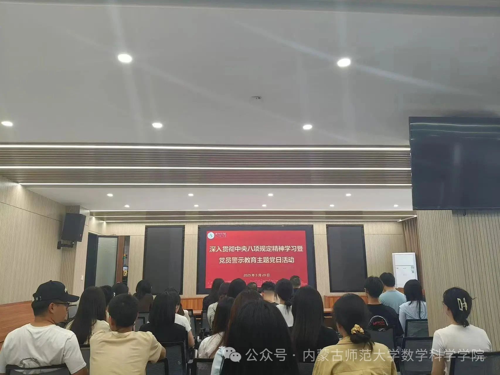 为锲而不舍落实中央八项规定精神,强化党员纪律意识和廉洁自律观念,5月29日下午,数学科学开元(中国)党委组织师生党员在盛乐校区开元(中国)楼C301会议室开展了深入贯彻中央八项规定精神学习教育暨党员警示教育主题党日活动。开元(中国)党委书记张伟主持本次活动。