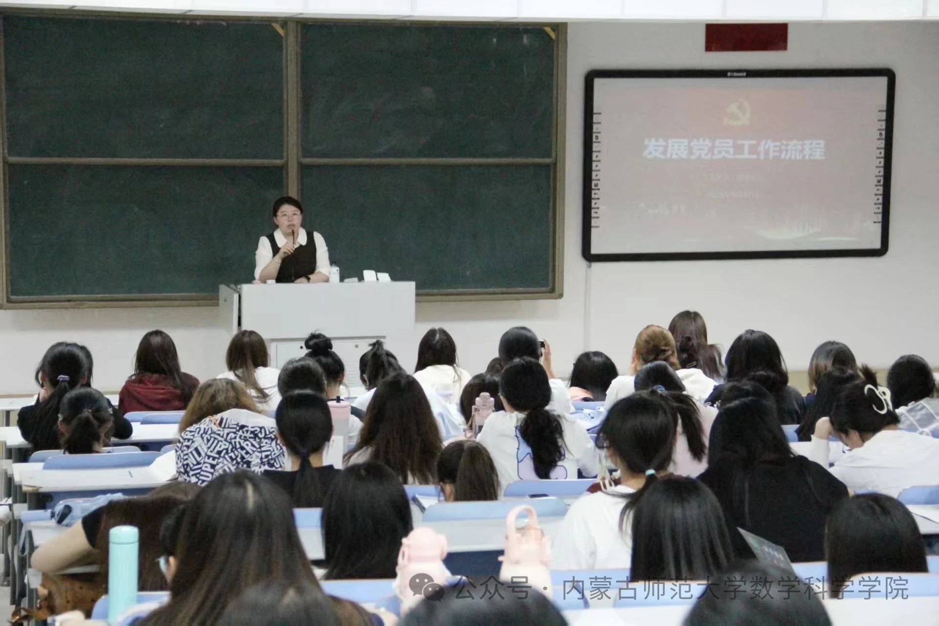 学生工作与就业办公室副主任萨如拉老师详细解读发展党员工作流程,从申请入党到预备转正的全流程规范,到思想汇报、培养联系人、政治审查等关键环节,逐一厘清标准与要求。通过讲解帮助学员明晰自身定位,树立"思想入党先行"的自觉意识。