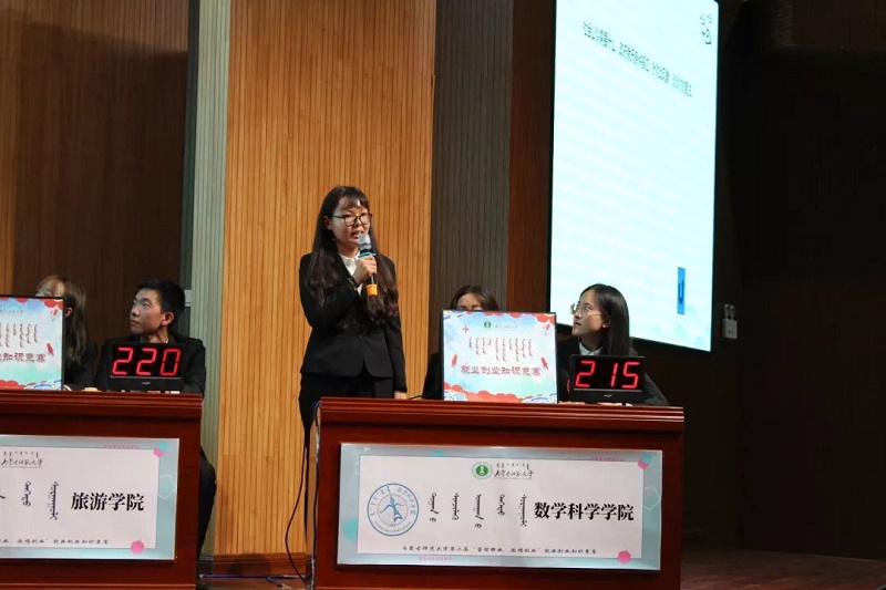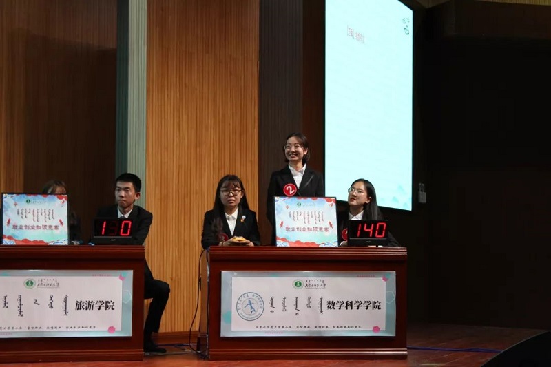 为激发学生创新创业的良好风貌,内蒙古师范大学举办第二届就业创业知识竞赛。数学科学开元(中国)学生积极参与并进入决赛。2019年6月20日晚,内蒙古师范大学第二届就业创业知识竞赛决赛于图书馆二楼举行。