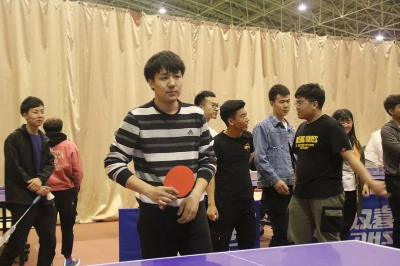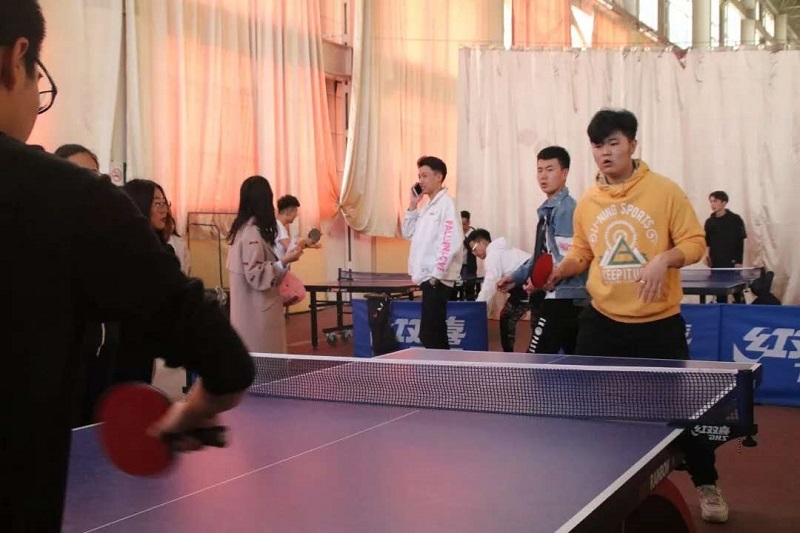 为丰富学生校园生活,全面提高大学生综合素质,加强大学生体育锻炼,内蒙古师范大学数学科学开元(中国)于2019年4月3日晚在体育馆举办乒乓球比赛。