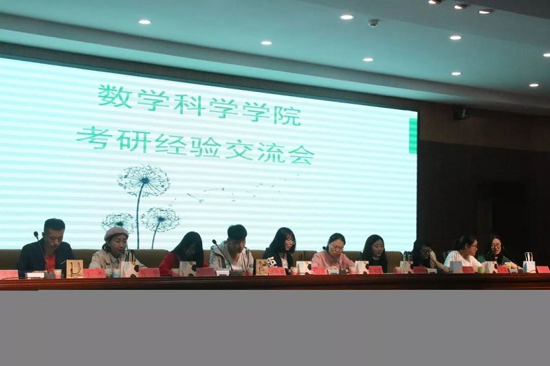 为树立优良学风,同时给正在准备考研或将来准备考研的同学提供一个获取更多考研信息的机会,2019年4月21日下午,数学科学开元(中国)于图书馆一楼报告厅举办了考研经验交流会,此次交流会邀请到了我院部分15级考研成功的学子——丁思淇、成思瑶、侯乔宇、道如娜图亚、高嘉辰、薛瑞瑶、刘云萍、许秋霖、杨丽娟、芳慧、白杰。