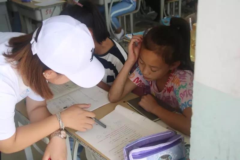 志愿者小老师们每天为孩子们精心准备语文、数学、英语课,大班讲课的同时,一对二式辅导每一个学生完成假期作业,解决孩子们课业上的问题。