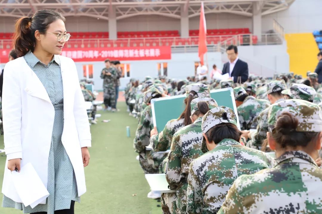 同学们通过书写粉笔字表达自己对建国70周年的庆祝。