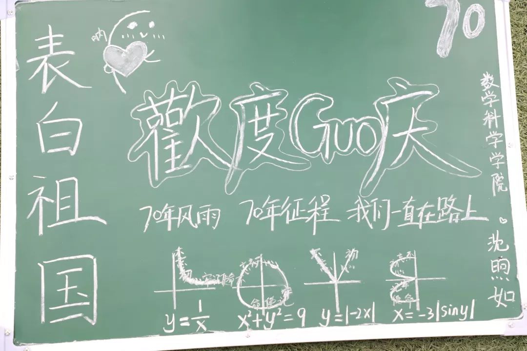 在建国70周年之际,学子们用自己的方式祝祖国70周年生日快乐,愿祖国繁荣昌盛,愿吾辈砥砺奋进,勇往直前!