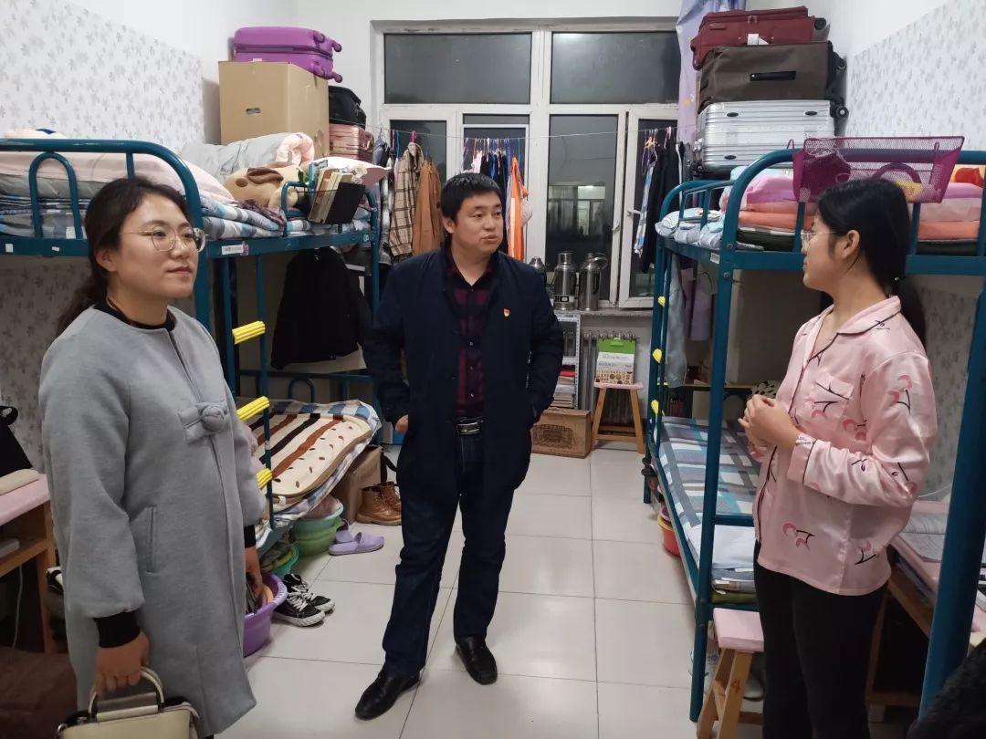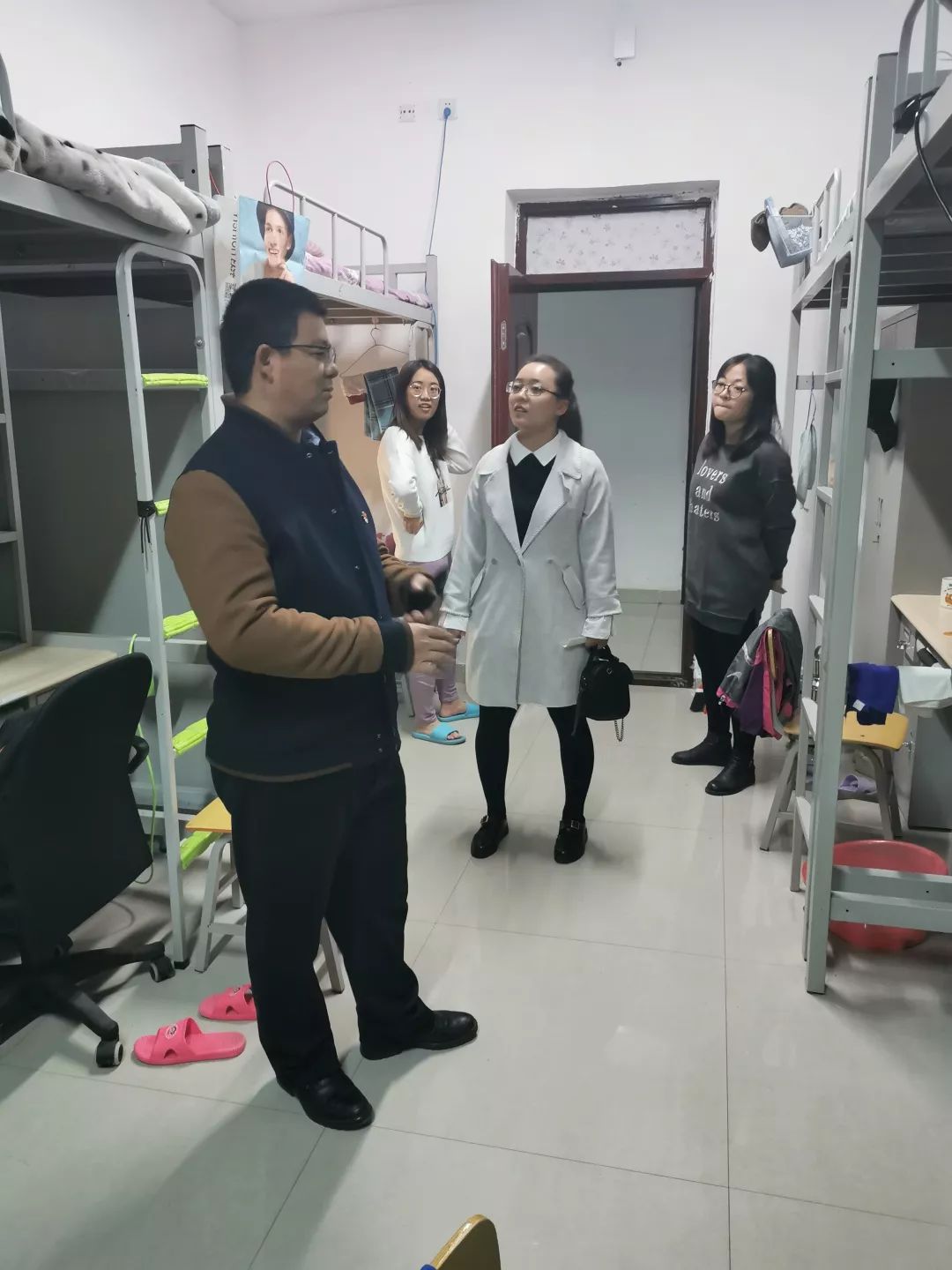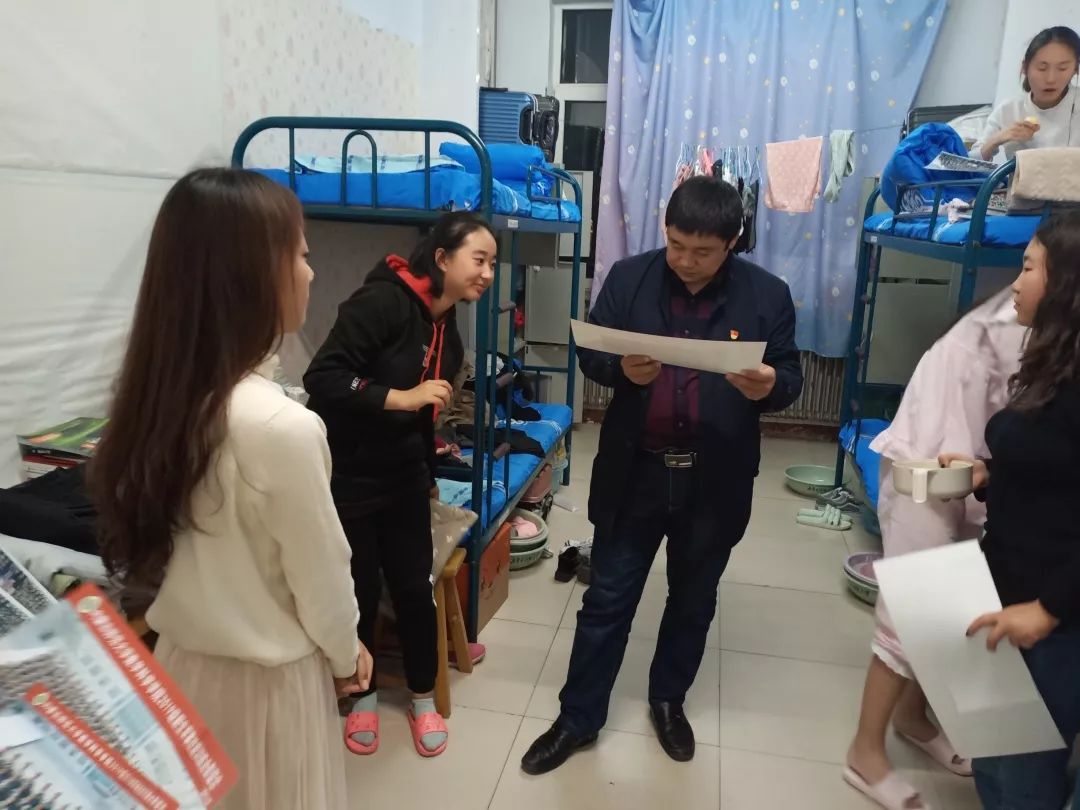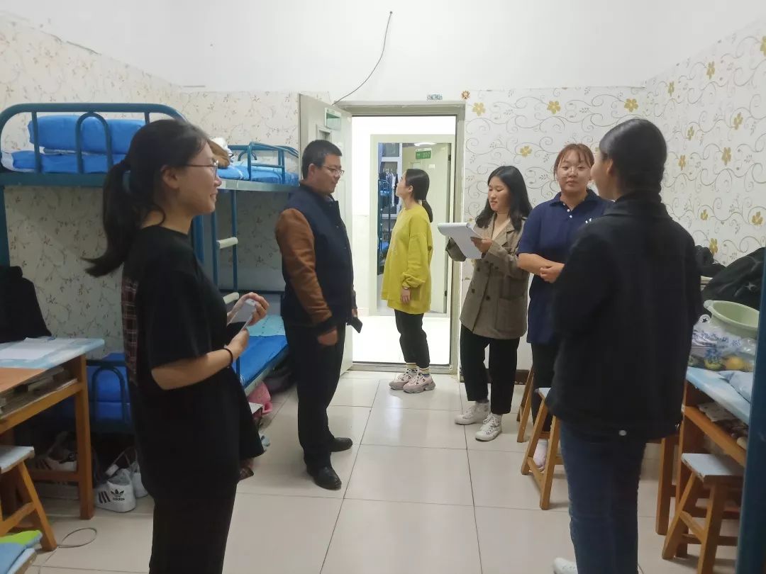 2019年10月21日,数学科学开元(中国)开展宿舍安全卫生大检查。数学科学开元(中国)党总支副书记、副院长季建光老师,开元(中国)团总支书记皮建东老师,开元(中国)辅导员李帅老师、刘沙沙老师来到同学们的宿舍进行检查。