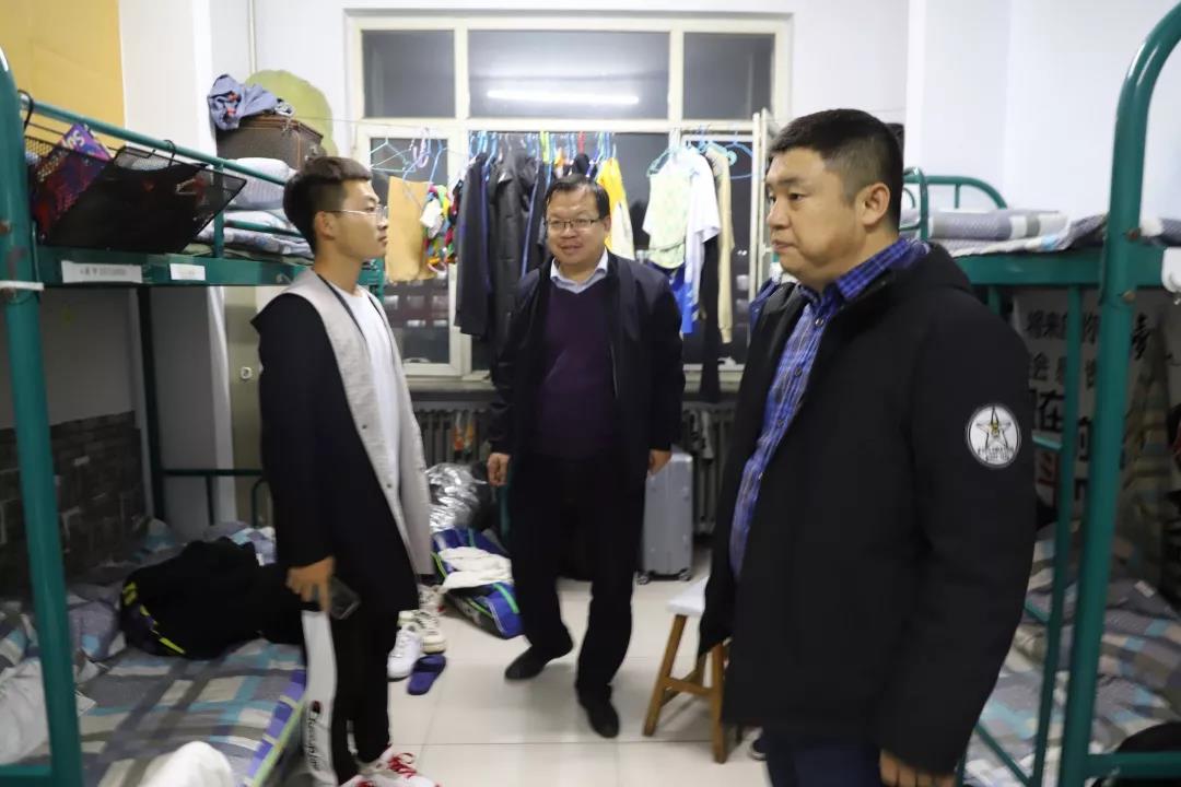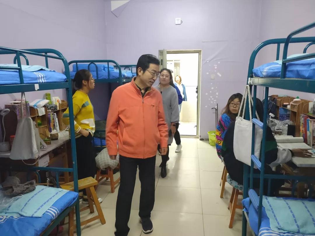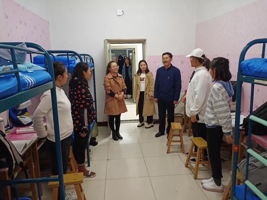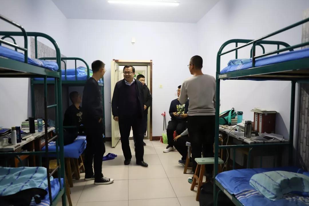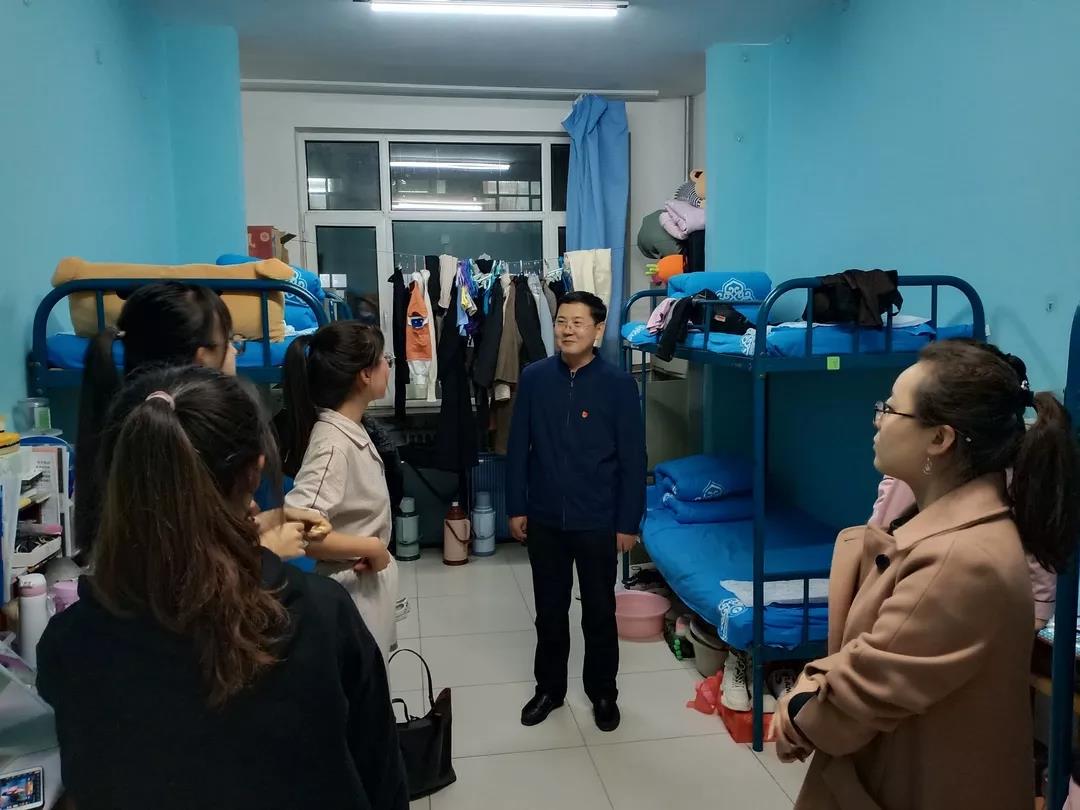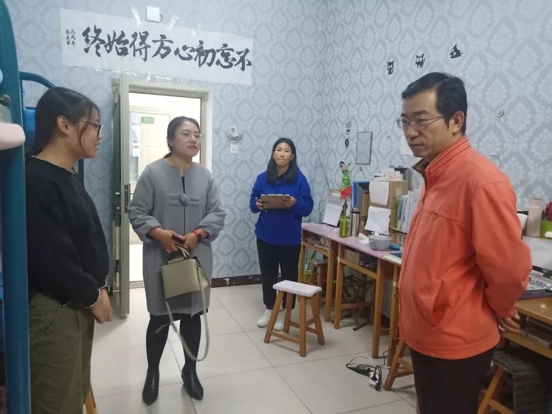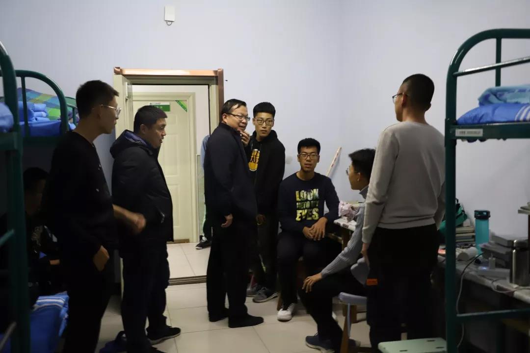 2019年11月4日,数学科学开元(中国)党总支书记扎其劳老师、院长刘官厅老师、党总支副书记、副院长季建光老师、副院长包霞老师、副院长李联合老师、学生辅导员李帅老师、刘沙沙老师来到学生宿舍进行安全卫生检查,亲切询问同学们生活、学习等情况。