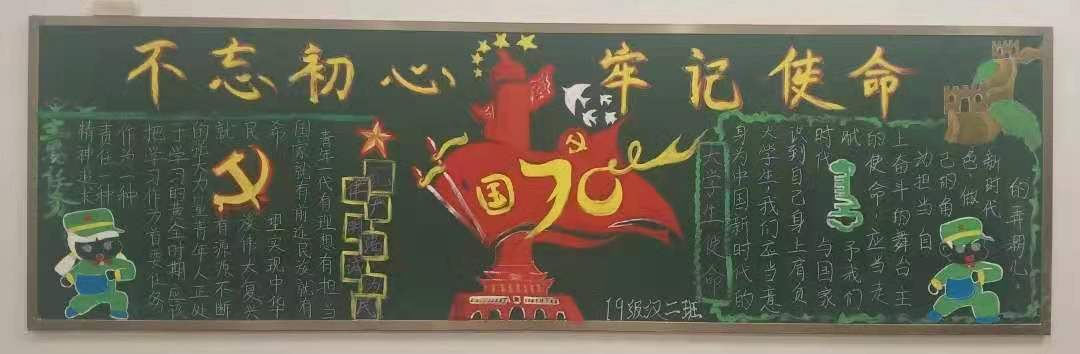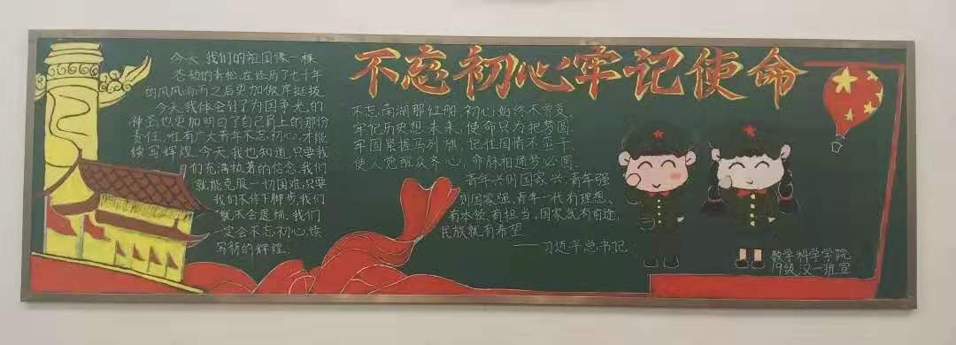 为扎实推进“不忘初心、牢记使命”主题教育,让广大学生坚定理想信念、进一步激发大家的爱国热情,激励同学们勇于作为、勇于担当,2019年11月数学科学开元(中国)开展板报评比大赛,开元(中国)18、19级各团支部积极参与,板报设计主题鲜明、内容丰富。