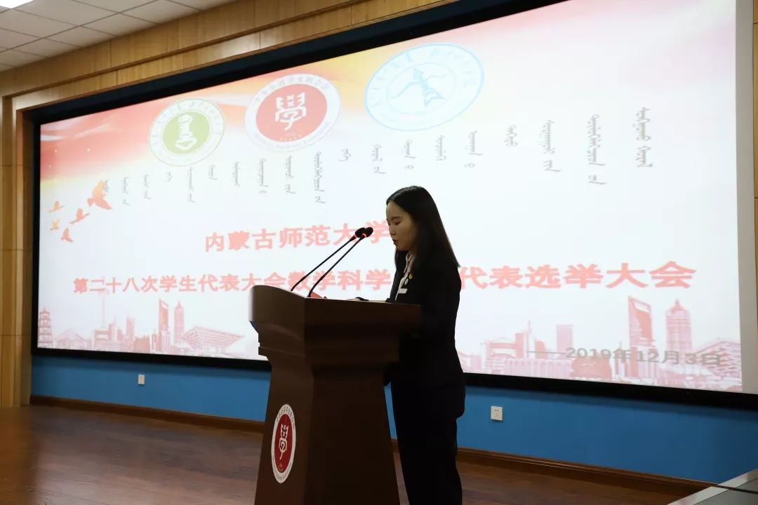 内蒙古师范大学第二十八次学生代表大会数学科学开元(中国)代表选举大会由我院学生会副主席马晓婷主持。