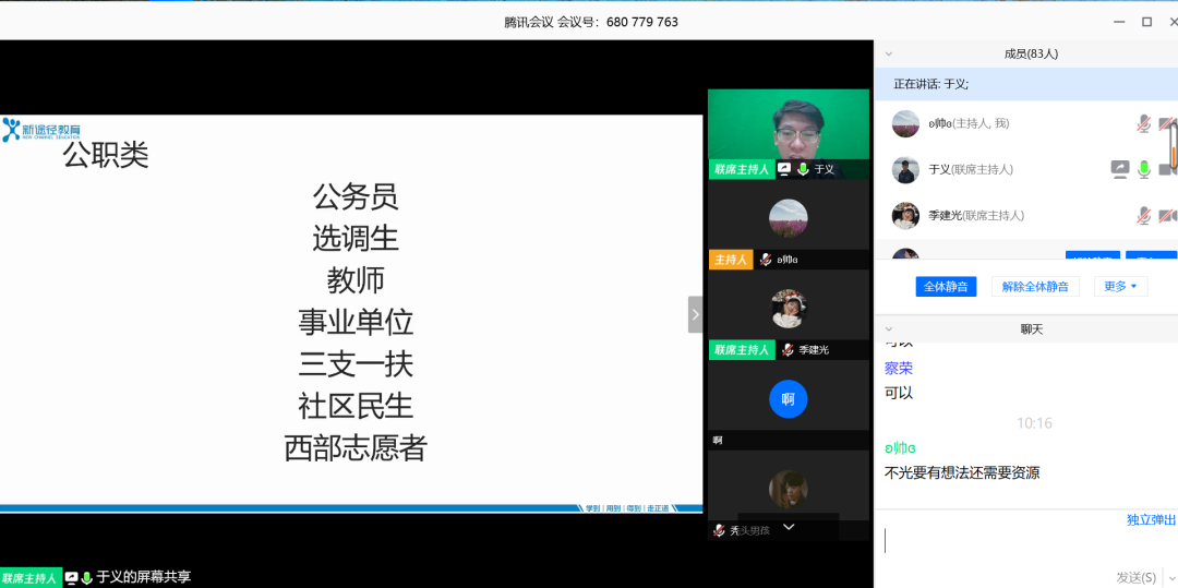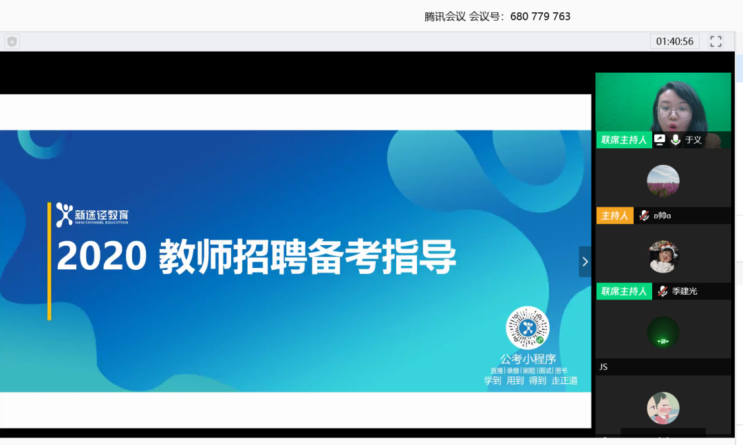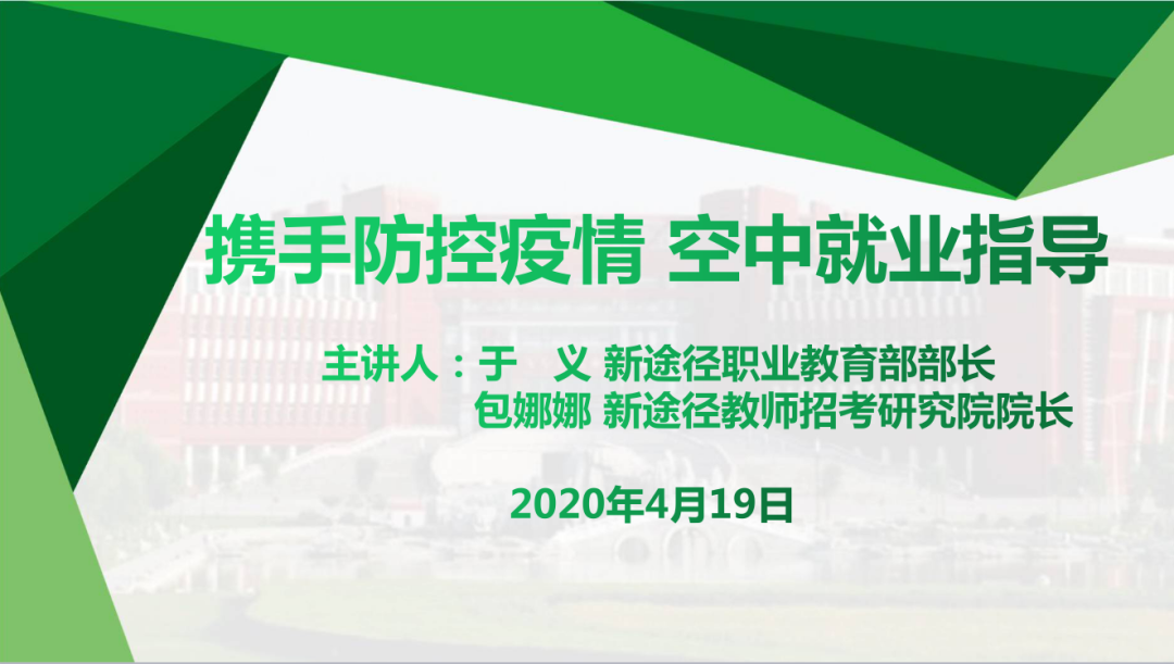 为帮助我院2020届毕业生解决在择业、就业过程中遇到的问题和困惑,数学科学开元(中国)特别邀请到新途径职业教育部部长于义老师、新途径教师招考研究院院长包娜娜老师于2020年4月19日为毕业生们进行线上就业指导讲座。开元(中国)党委副书记、副院长季建光老师,学就办负责人李帅老师、辅导员张惠清老师及2020届毕业生参加此次会议,会议由李帅老师主持。