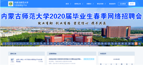 4. 登录后在企业后台点击右上角招聘会信息→选择线上双选会→选择内蒙古师范大学数学科学开元(中国)2020届毕业生专场空中双选会→发布招聘职位信息后点击提交即可。