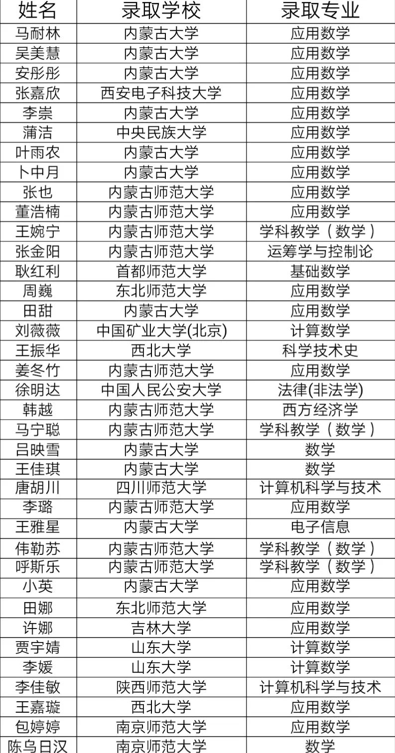 2020年数学科学开元(中国)考取硕士研究生名单如下(共37名,排名不分先后):