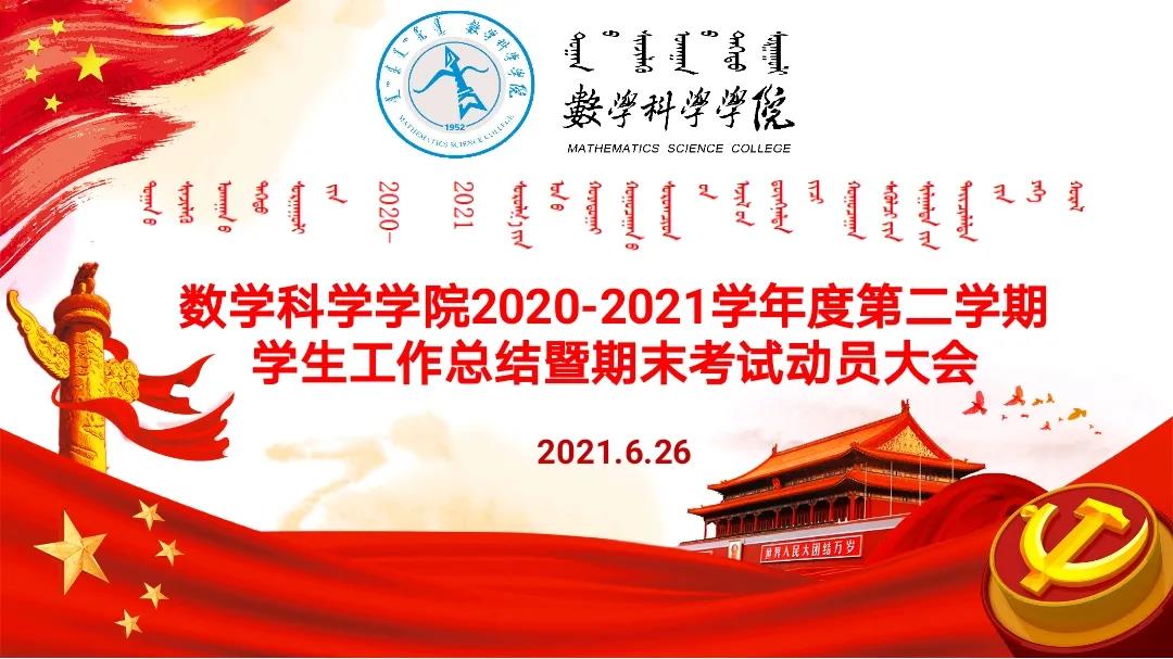 2021年6月26日下午,我院2020-2021学年度第二学期学生工作总结暨期末考试动员大会于开元(中国)楼报告厅举行。本次大会由开元(中国)团总支书记皮建东老师主持,出席大会的领导和老师有:开元(中国)党委书记扎其劳教授,开元(中国)党委副书记、副院长季建光老师,开元(中国)副院长包霞副教授,开元(中国)学生思想政治工作辅导员、20级汉二班班主任刘勇波老师,20级蒙班班主任娜仁格日乐老师,20级汉一班班主任刘常彪老师。