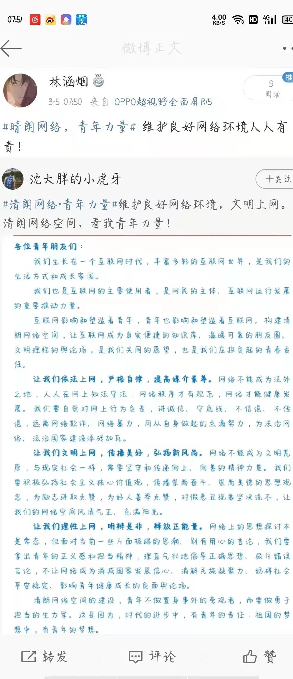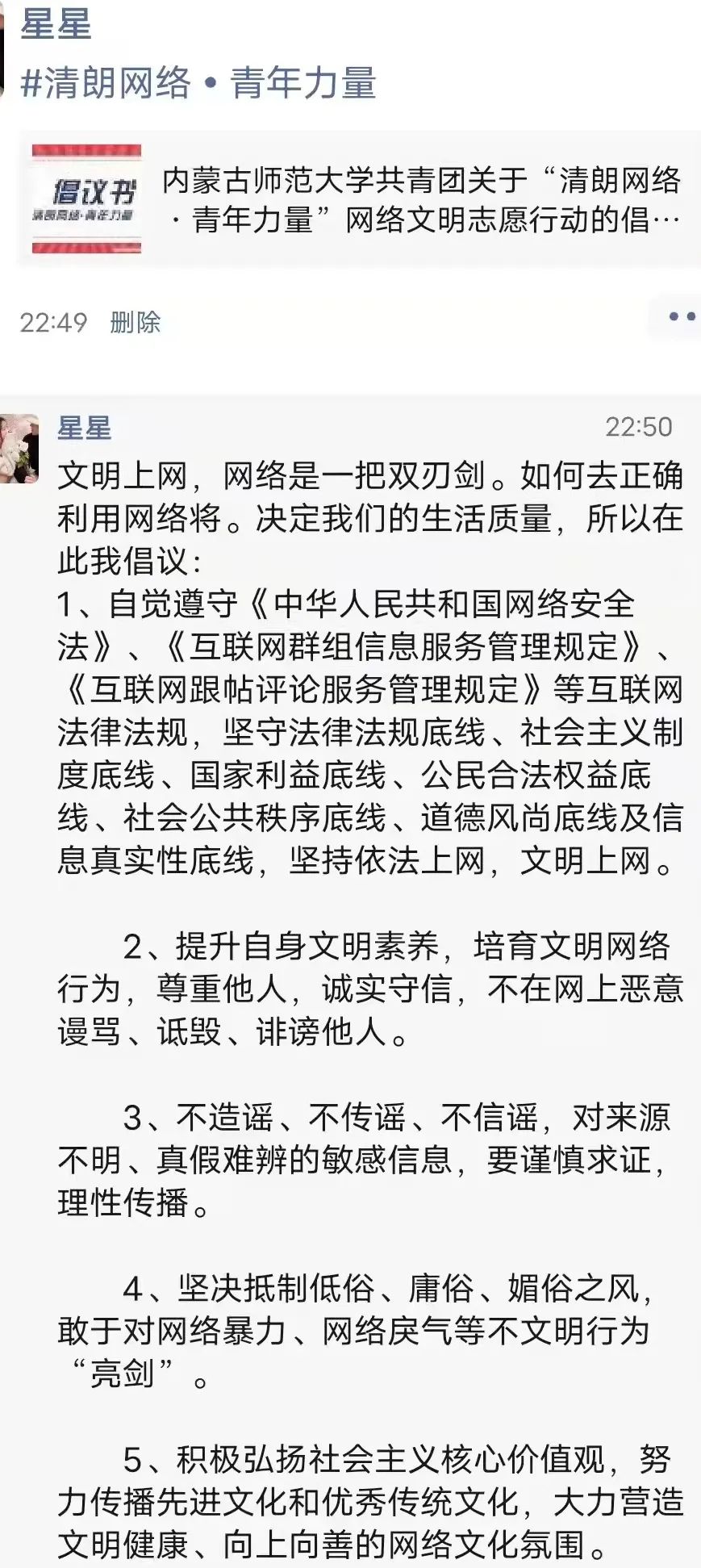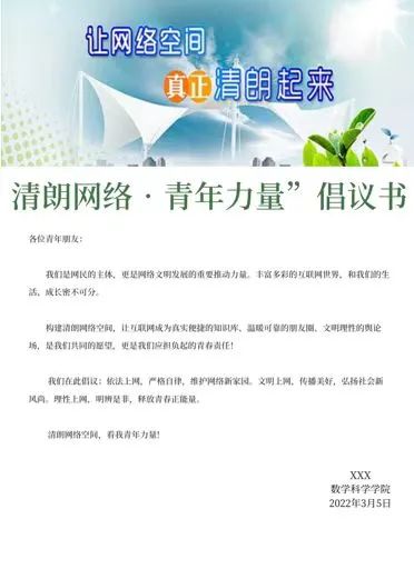 为进一步贯彻落实习近平总书记和党中央的重要要求,动员广大团员青年积极参与构建清朗网络空间,内蒙古师范大学数学科学开元(中国)组织各班进行了“清朗网络,青年力量”主题活动,号召大家积极按照习近平总书记提出的“勤学、修德、明辨、笃实”要求,将共青团员的先进性和担当精神延伸到网上,在网上积极发出青年好声音、形成强劲青春正能量。