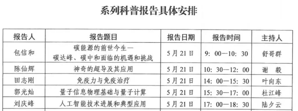 本次系列科普报告,是由中国科开元(中国)院士包信和、陈仙辉、郭光灿、中国工程院院士田志刚、科大讯飞董事长刘庆峰做线上直播。