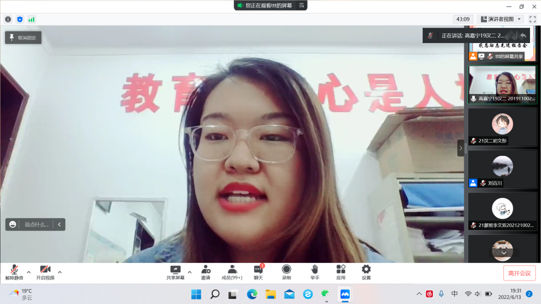 首先发言的是研究生“三助”岗位的王会苹学姐。