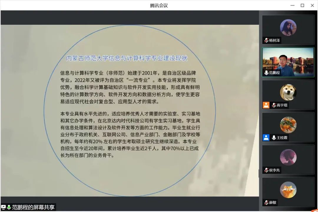范鹏程老师开展的是信息与计算科学专业思想教育讲座,鼓励新生积极、努力把数学和计算机编程方面学精、学透,通过知乎、百度、慕课网等提升自我自主学习能力。