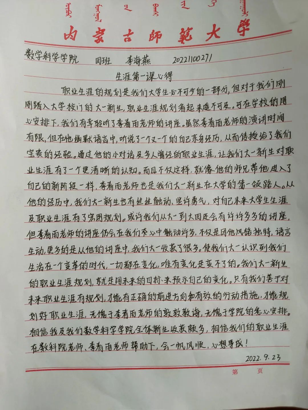 为引导新生树立正确的人生观和成才观,提高求实创新、励志图强的意识,科学地规划自己的大学生活和未来的职业生涯,数学科学开元(中国)于9月23日上午组织2022级新生观看“大学生生涯规划第一课”。
