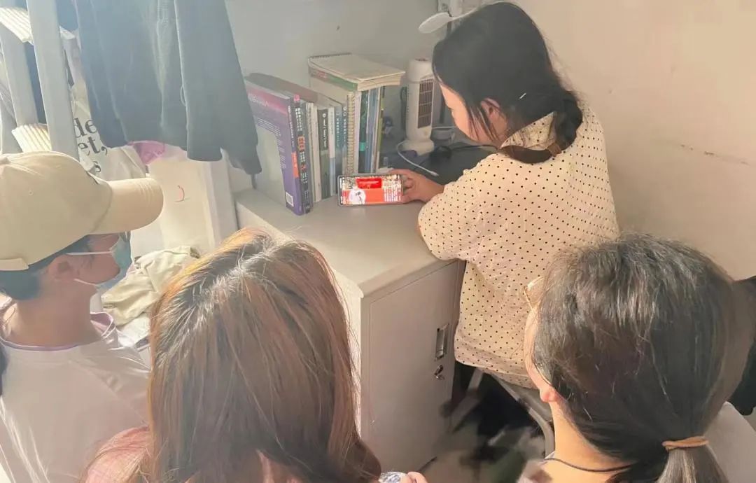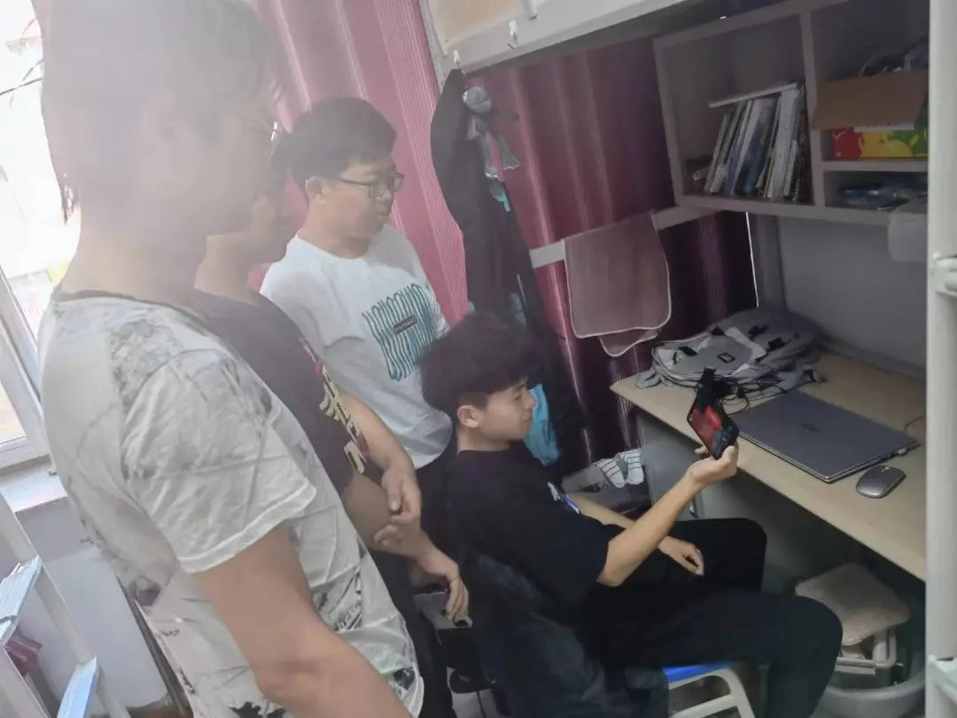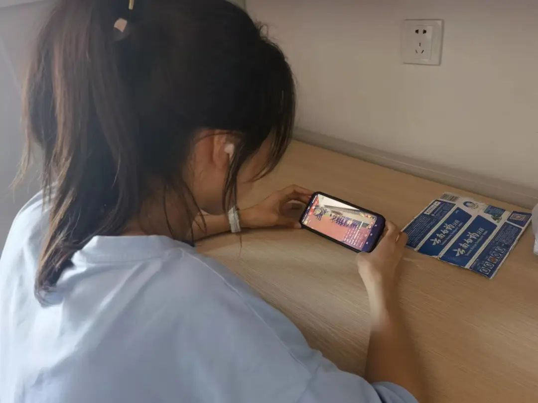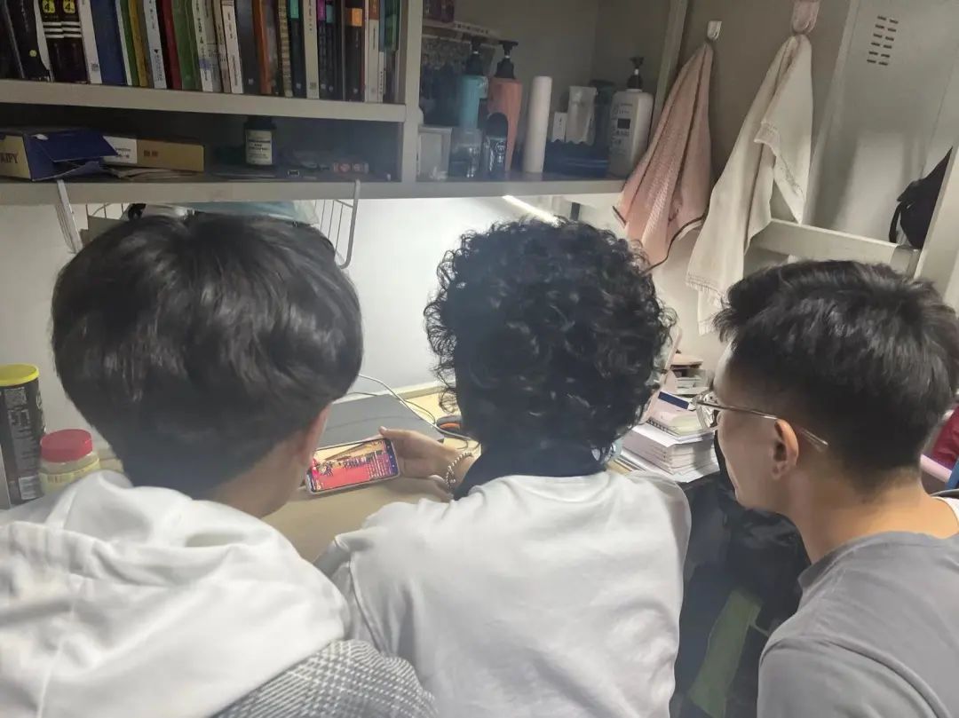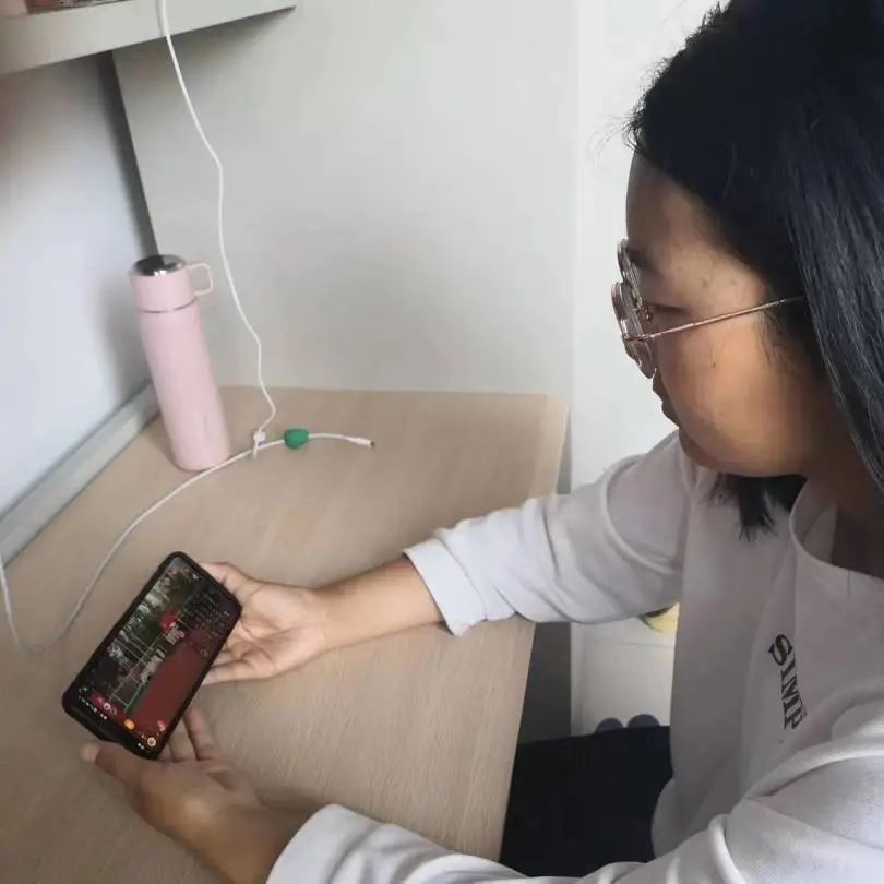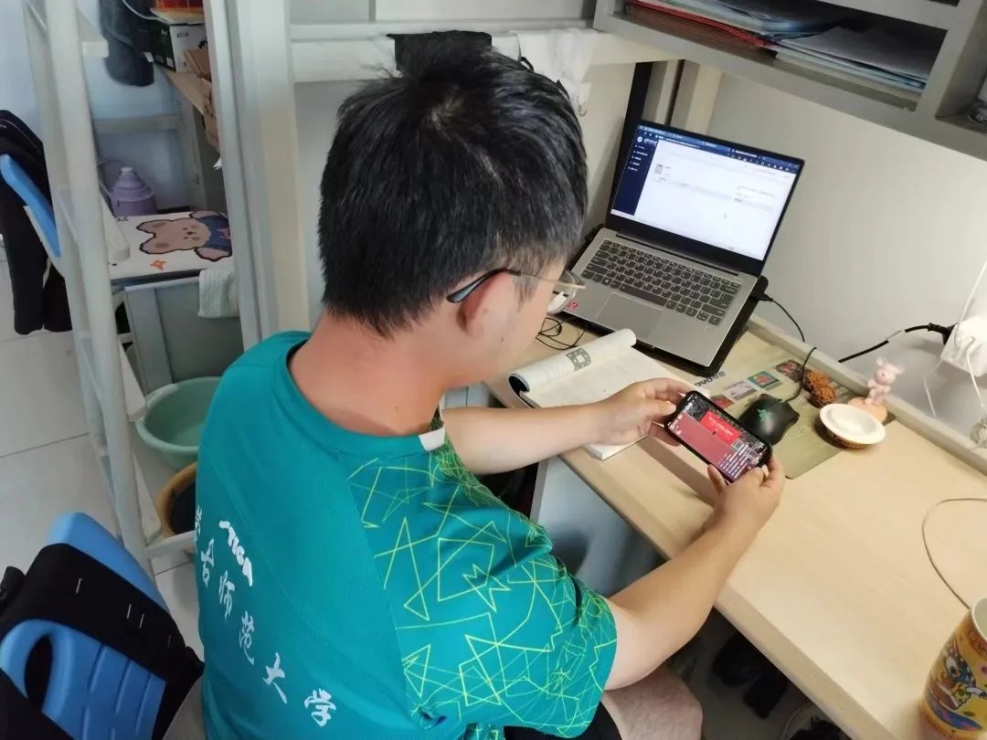 数科学子在宿舍、教室认真观看直播。
