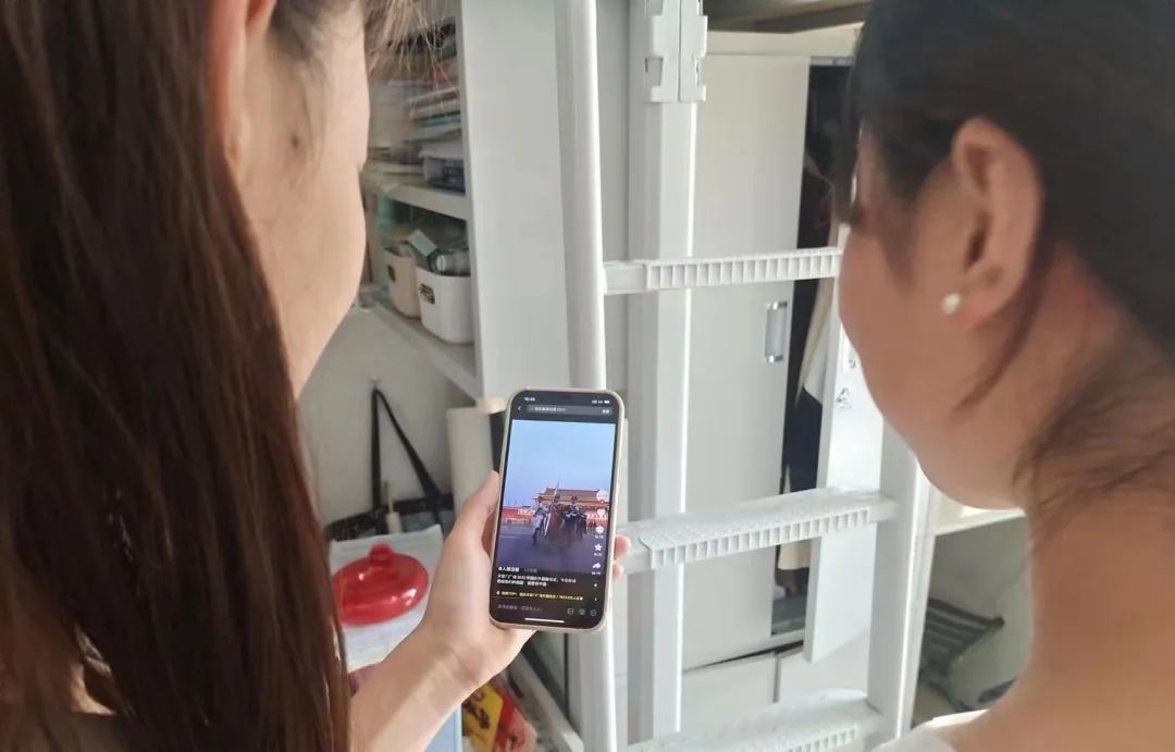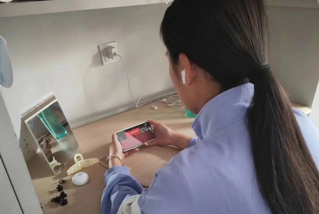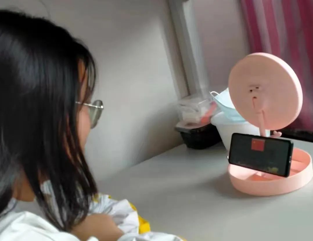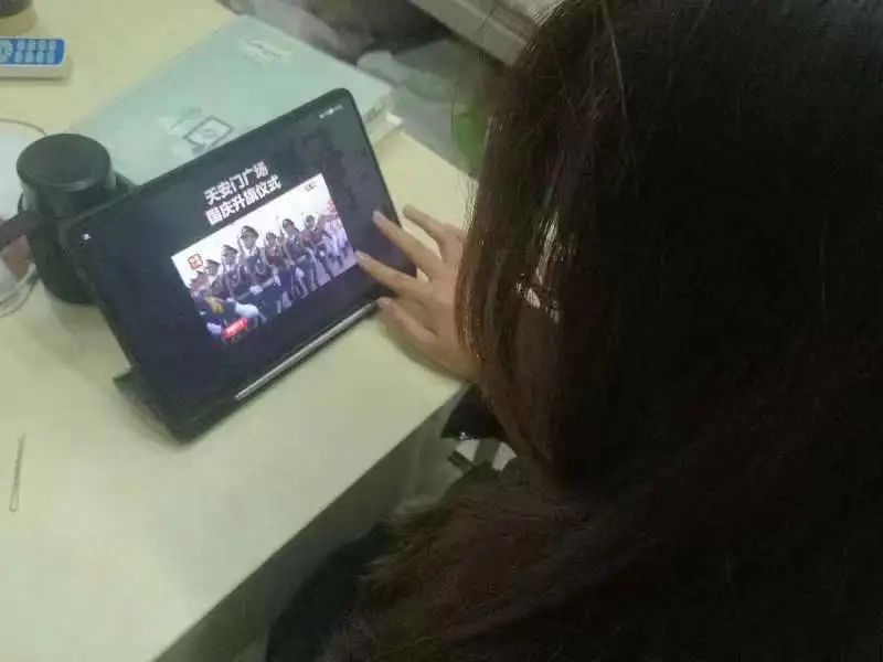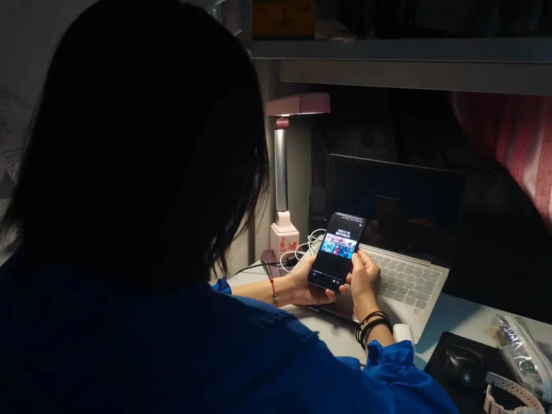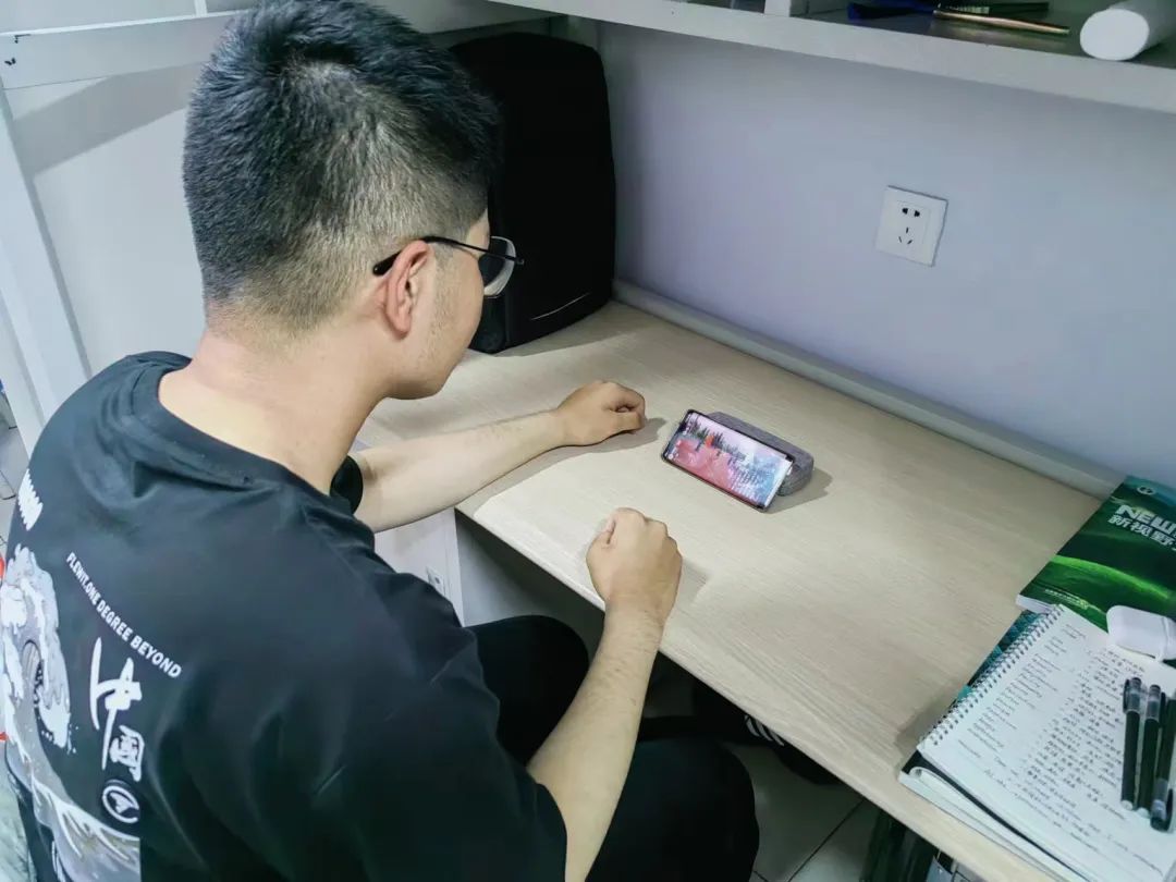 数科学子在宿舍、教室认真观看直播。