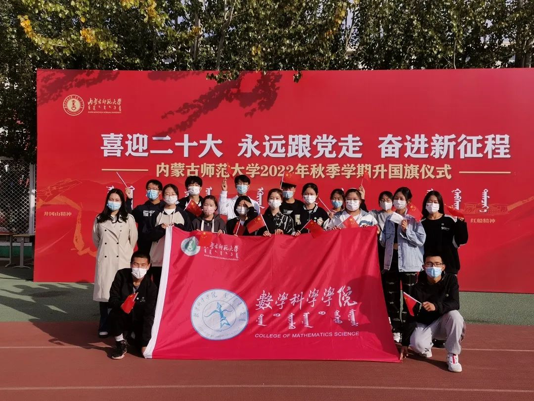 10月1日8:00,内蒙古师范大学在操场隆重举行国庆升旗仪式,数学科学开元(中国)组织老师与学生代表参加升旗仪式。与此同时,未能到现场的数科学子通过直播一起参加了升旗仪式,以庄严神圣的方式共同庆祝我们伟大祖国的73岁生日,共同抒发对伟大祖国热爱与敬仰之情,同时将以饱满的热情和昂扬的斗志,迎接党的二十大胜利召开。