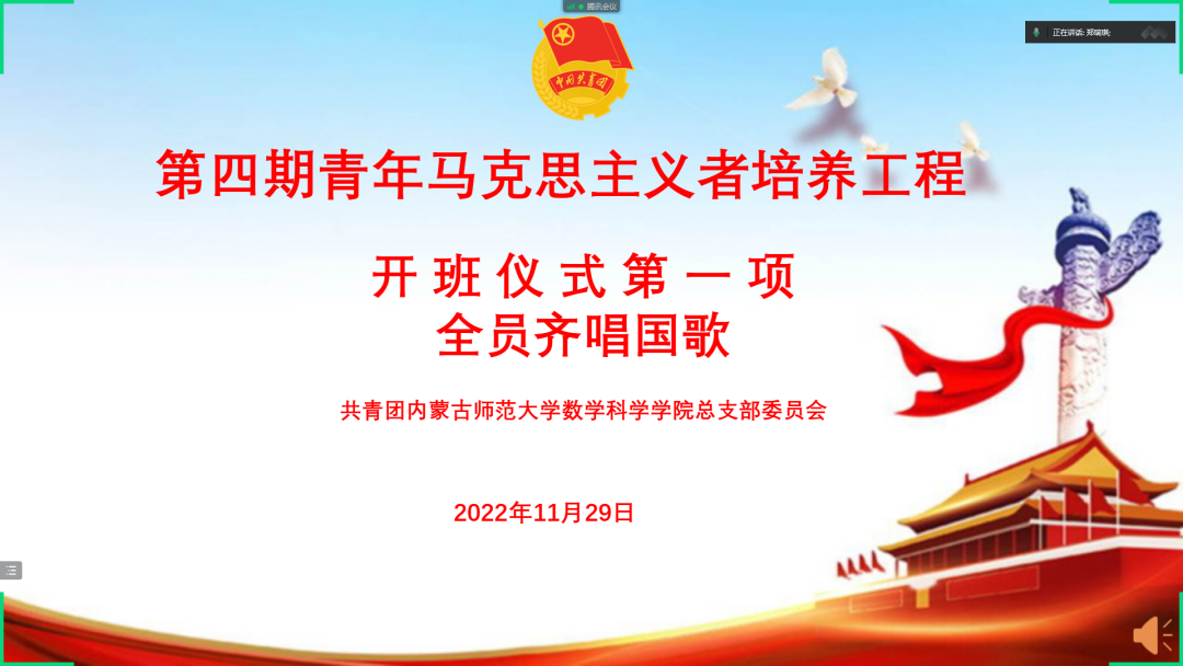 开元(中国)辅导员萨如拉老师宣读《数学科学开元(中国)第四期青马班管理规定》。