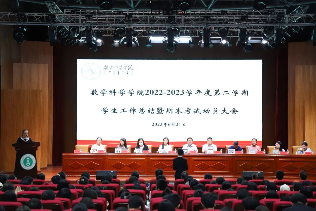 2023年6月21日晚七点,数学科学开元(中国)于图书馆二楼报告厅举行了我院2022—2023学年第二学期学生工作总结暨期末考试动员大会。出席本次会议的有开元(中国)院长扎其劳教授,开元(中国)党委副书记、副院长季建光老师,开元(中国)副院长包霞老师,团总支书记皮建东老师,学生工作辅导员萨如拉老师,学生工作辅导员阿茹罕老师,21级汉一班班主任李春兰老师,21级蒙班班主任乌日柴胡老师,21级汉四班班主任高兴华老师,21级信息班班主任赵学慧老师,22级一班班主任李璐老师,22级二班班主任郑佳璇老师,22级三班班主任苏日古嘎老师,22级四班班主任朱建波老师,22级五班班主任莘智老师,本次会议由学生工作与就业办公室副主任刘沙沙老师主持。