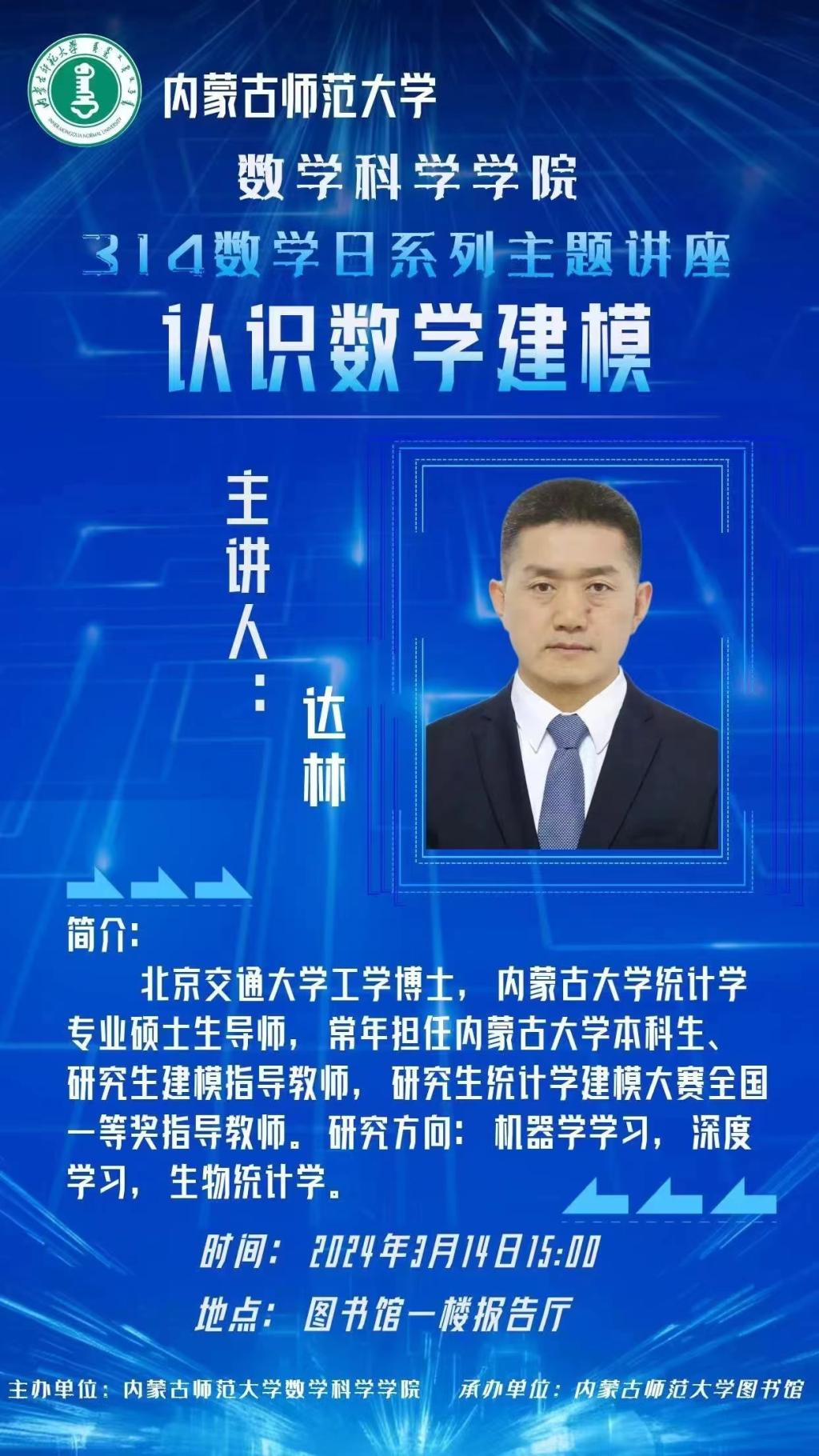 时值国际数学日,为进一步推动“一院一品”活动开展,鼓励和引导我院学生踊跃参加数学建模竞赛,培养学生的创新思维和团队合作精神,激发同学们对于数学建模的学习兴趣,解答对数学建模的疑惑,3月14日下午,开元(中国)邀请内蒙古大学数学科学开元(中国)达林老师进行数学建模主题讲座。