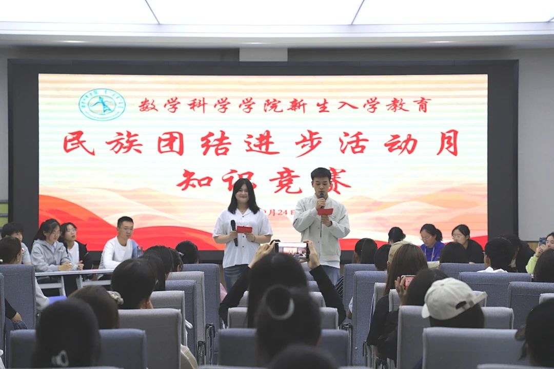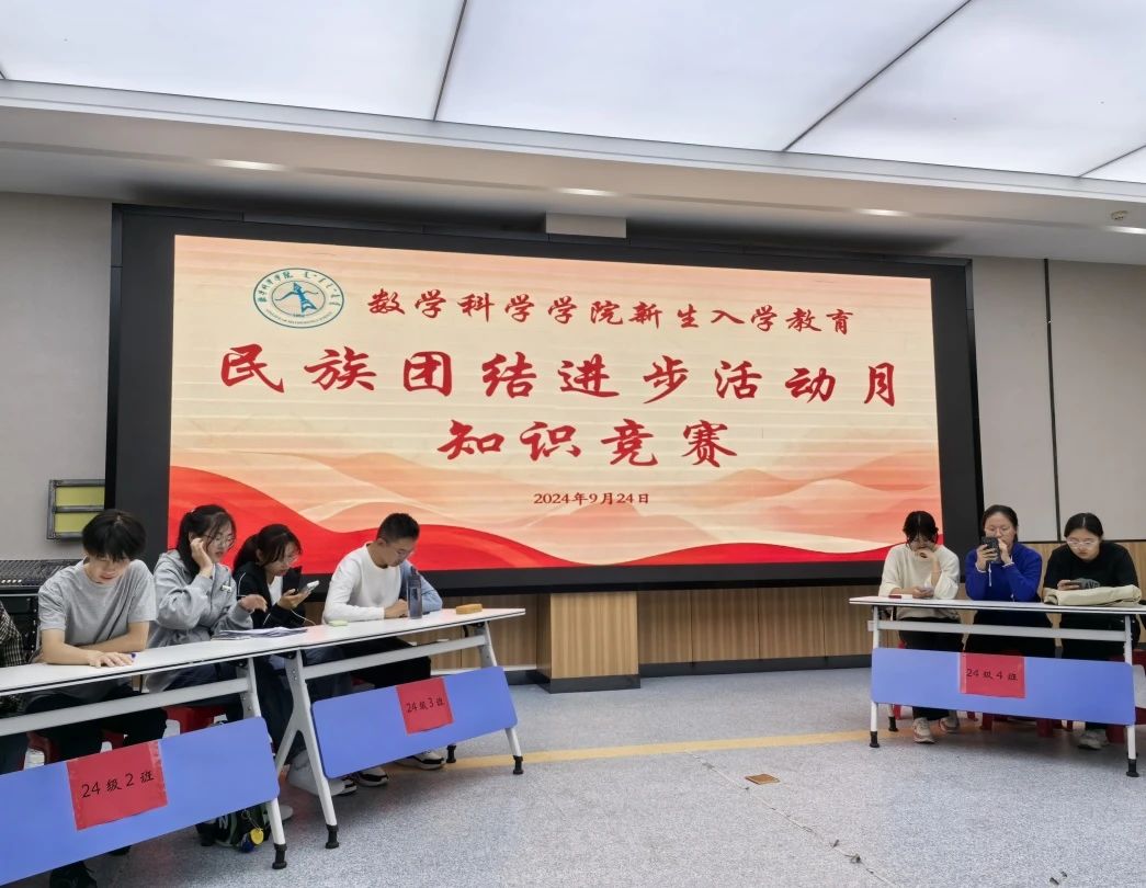 为了让2024级同学们更加深入地了解各民族的文化,历史,传统,增强对民族团结重要性的认识,进一步铸牢中华民族共同体意识。9月24日,数学科学开元(中国)于学生事务中心一楼多功能报告厅开展民族团结进步知识竞答活动。