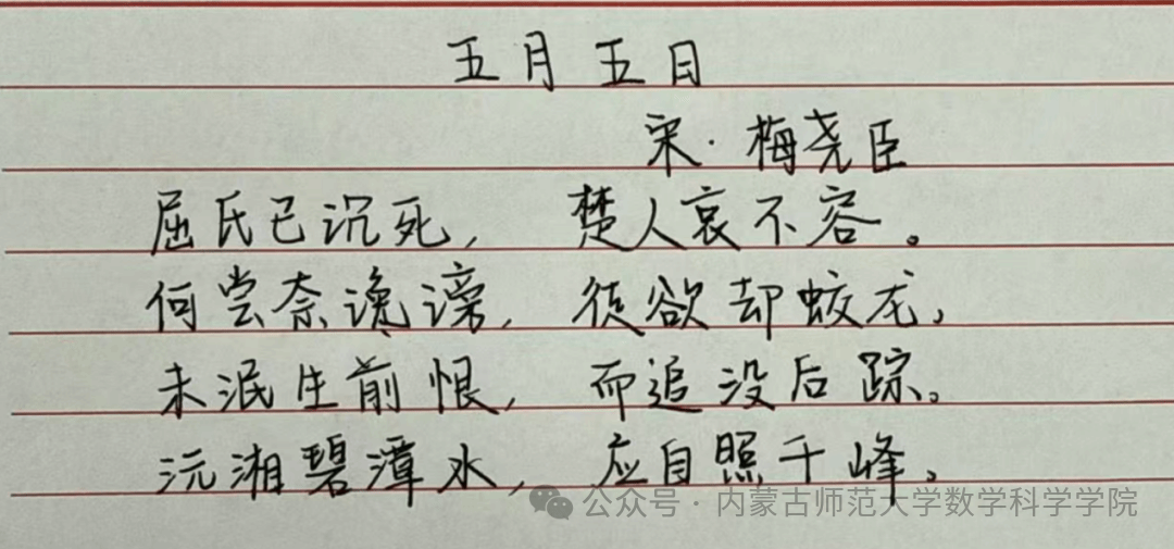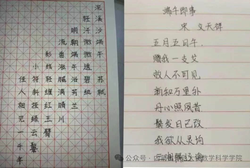 端午节,作为中国四大传统节日之一,承载着深厚的文化底蕴与民族情感。为弘扬中华优秀传统文化,我院以“数映北疆·资助育人”为指引,举办此次“笔精墨妙,礼诵端午”书法活动。通过将端午文化与书法艺术结合,既能弘扬传统节日内涵,又能提升参与者的文化素养与艺术体验。