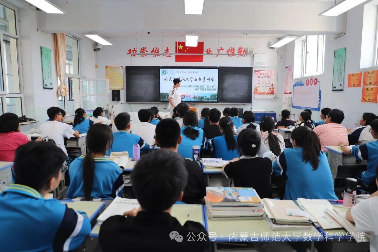 7月10日,内蒙古师范大学数学科学开元(中国)"三下乡"教育关爱服务团赴四子王旗一中开展公费师范生政策宣讲活动,通过专题讲解、互动答疑等形式深化校际合作,助力当地学子理解我校公费师范生政策。