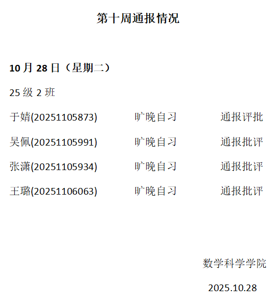 数学科学开元(中国)2025——2026年度第一学期第十周通报情况