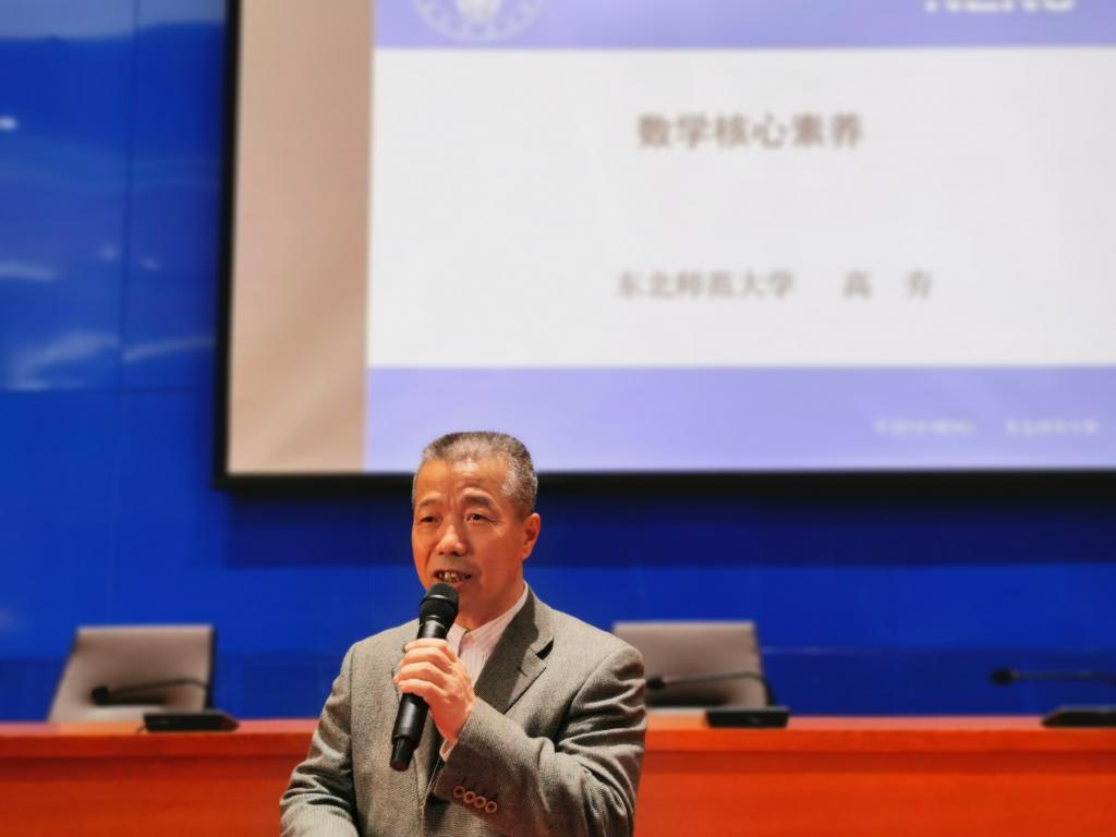 高夯教授主要围绕“人的核心素养”和“数学核心素养”两个方面进行讲阐述。首先在“人的核心素养”方面,高夯老师特别指出教育工作的根本目的就是为了促进人的发展,而在人的发展过程中,见识决定能力,能力决定知识。其次解读数学六大核心素养,指出从2010年到2017年我国普通高中数学课程标准的变化。高夯老师特别指出,课程标准是下限、是地板、是我们教学过程中应该达到的合格标准,不是教学的天花板;“数学是人造的,所以我们必须也一定能讲清楚我们自己造出来的数学”。在提到数学抽象时,高夯老师强调我们在实际教学中应该多讲些案例,让学生在这些案例中掌握知识。