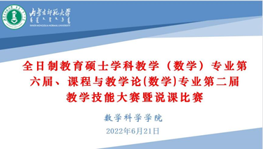 为加强我院数学教育方向硕士研究生教育教学实践能力的提升,教学技能的培养,以赛促教、以赛促学、以赛促改,我院于2022年6月21日8:00—14:00在腾讯视频会议上举办了2021级学科教学(数学)专业第六届、课程与教学论(数学)专业第二届教学技能大赛暨说课比赛。