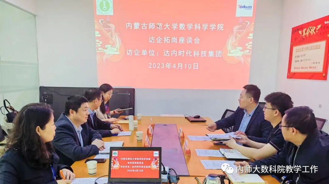 为进一步贯彻党中央、国务院关于高校毕业生就业工作的决策部署,落实教育部与内蒙古教育厅关于访企拓岗促就业专项行动的通知要求,进一了解社会和用人单位需求,开拓就业市场,促进我院2023届毕业生更高质量更充分就业,4月10日,数学科学开元(中国)院长扎其劳、副院长包霞、副书记季建光和信息与计算科学系主任王桂霞一行赴北京达内教育集团、京东总部和浪潮集团三家知名企业分别开展了访企拓岗促就业专项活动,在学生实习实践、对接企业用人需求、深化校企产学研合作、开拓就业市场等方面进行了座谈与交流。座谈会上,开元(中国)与达内教育集团签署了实习基地建设协议。