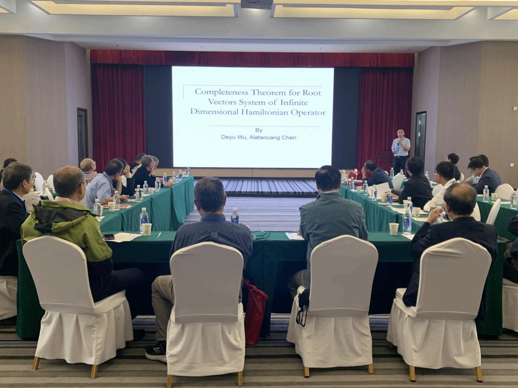 田刚院士作了题目为“随机矩阵与SKY模型”的前沿精彩报告,内蒙古大学吴德玉教授汇报了我校无穷维哈密顿系统及其算法应用教育部重点实验室阿拉坦仓教授研究团队的最新成果“Completeness Theorem for the Root Vector System of Infinite Dimensional Hamiltonian Operator”。与会代表关于报告内容展开了热烈讨论。