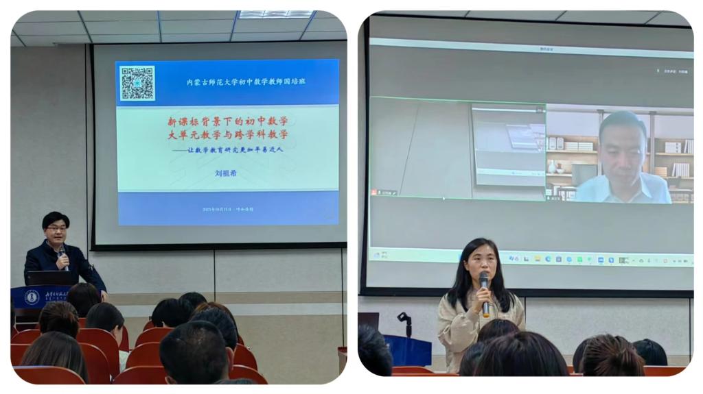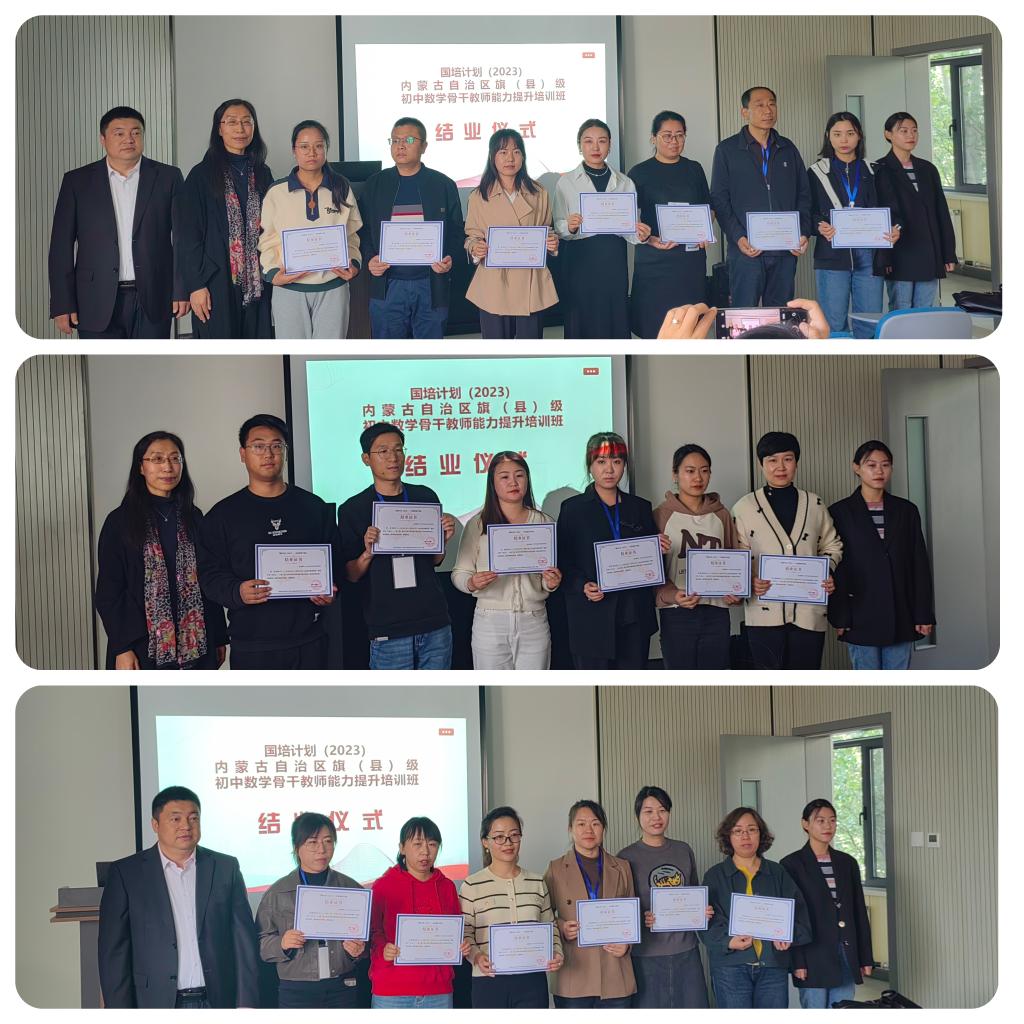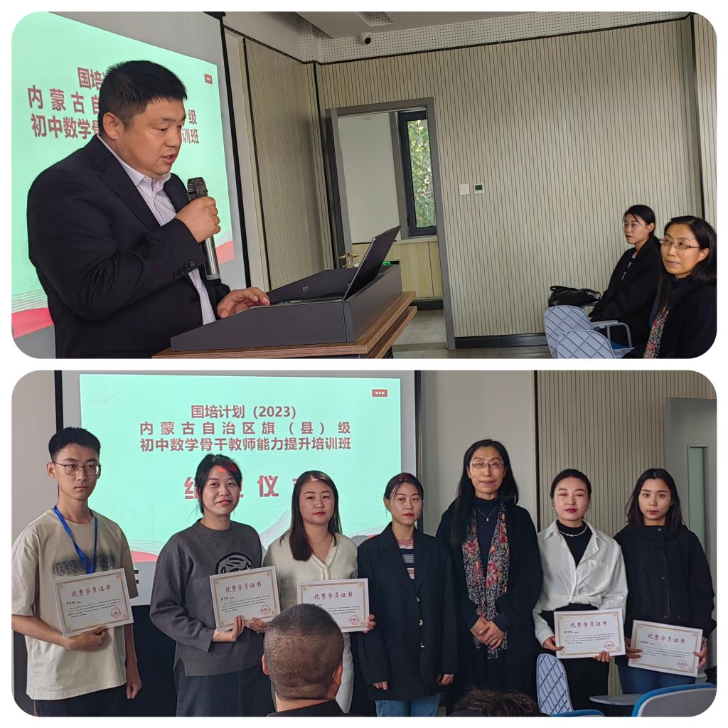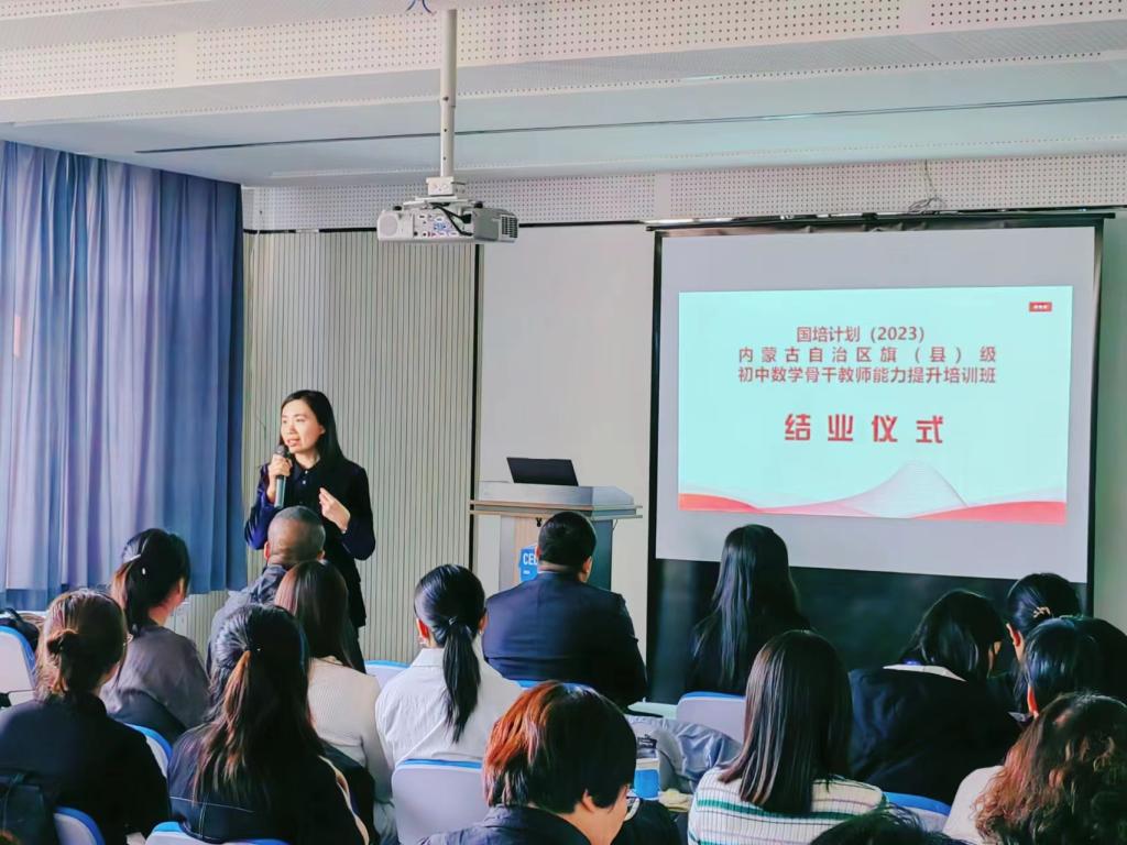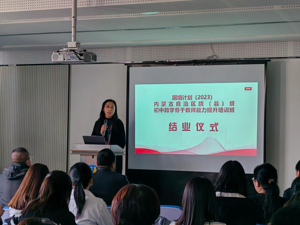 10 月 23 日下午 “国培计划(2023)——内蒙古自治区旗(县)级初中数学骨干教师能力提升”培训在内蒙古师范大学圆满落幕。本次培训由内蒙古师范大学继续教育开元(中国)主办,数学科学开元(中国)承办,为期14天,含集中研修7天和跟岗实践7天,50名学员来自全区各盟市选派来的旗(县)级初中数学骨干教师。继续教育开元(中国)培训部薛佳琦老师、数学科学开元(中国)副书记季建光老师、培训项目负责人数学科开元(中国)副院长包霞老师、培训项目对接人数学科开元(中国)李春兰老师、培训班班主任及相关工作人员出席了结业典礼。李春兰老师主持了结业仪式。