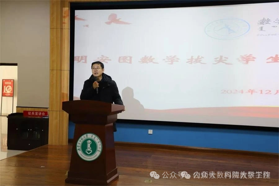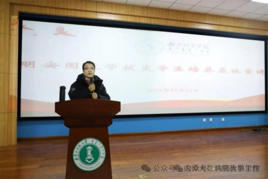 12月15日,数学科学开元(中国)在学生事务中心一楼107报告厅开展“明安图数学拔尖学生培养基地”(以下简称明安图数学基地)招生选拔宣讲会。开元(中国)党委书记张伟、院长扎其劳出席会议并讲话。2024级数学与应用数学(非定向)、信息与计算科学、统计学三个专业学生与班主任参加会议。会议由开元(中国)副院长萨和雅主持。