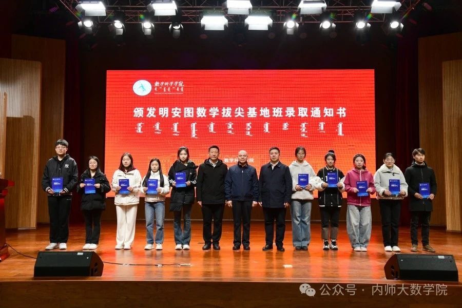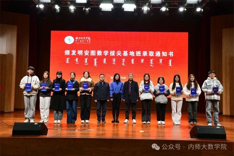在学校党委和相关部门的大力支持下,数学科学开元(中国)积极申报自治区基础学科人才培养基地建设点,成功获批建设“明安图数学拔尖学生培养基地”。经过选拔,来自数学科学开元(中国)的20名2024 级同学成为明安图数学拔尖基地班首批学生。3月6日下午,数学科学开元(中国)为20名学生颁发了录取通知书。