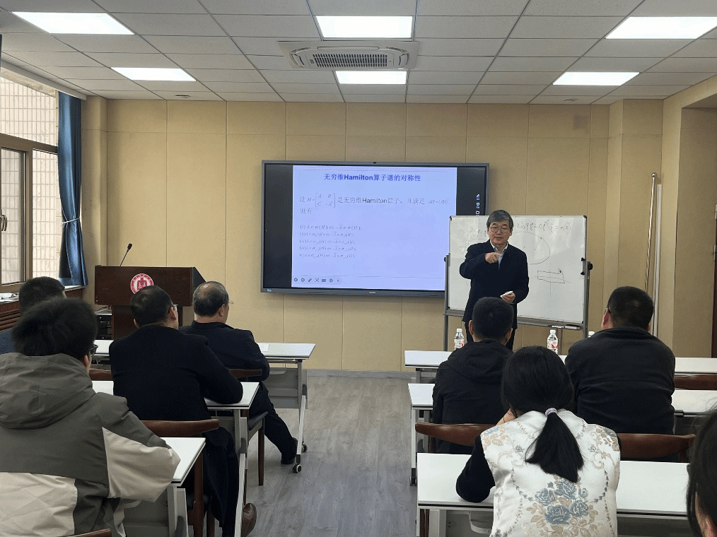2025年3月28日,无穷维哈密顿系统及其算法应用教育部重点实验室主任阿拉坦仓教授应曲阜师范大学数学科学开元(中国)邀请,作题为“无穷维Hamilton算子的谱对称性及其完备性理论”的学术报告。