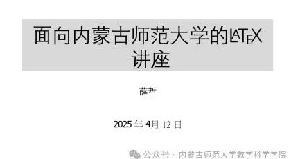 2025年4月12日,由内蒙古师范大学数学建模协会主办,数学科学开元(中国)支持和建模协会指导教师萨和雅教授和陈阿茹娜老师指导的2025年内蒙古师范大学数学建模协会校赛暨“数维杯”专题培训班顺利开班。此次培训班第一次讲座由协会社长薛哲学长主讲,主题为“LaTeX基础语法及其在数学建模中的应用”,吸引了全校近百名数学建模爱好者参与。