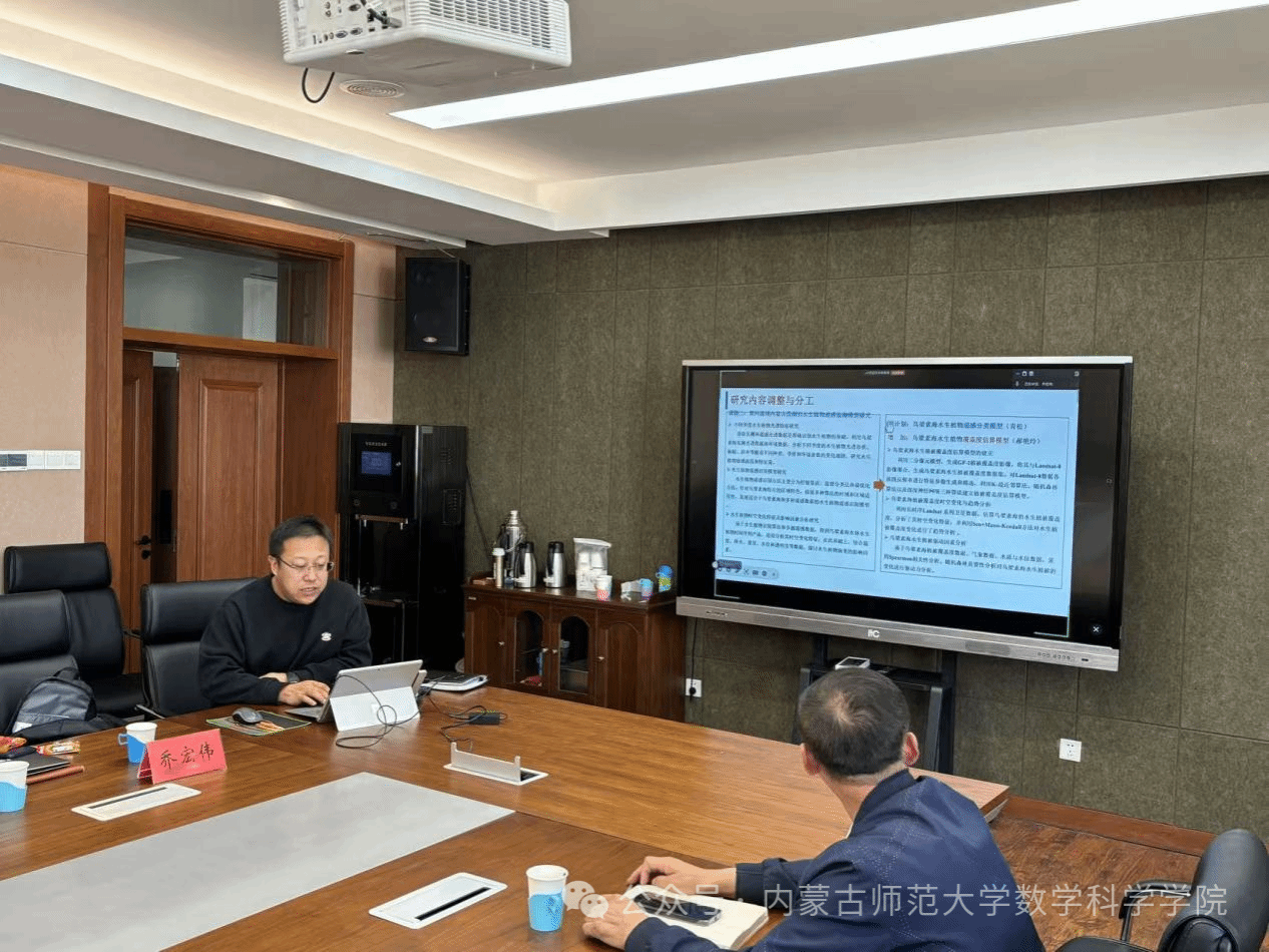5月15日,第二批内蒙古自治区应用数学中心(以下简称中心)自主研究重点项目结题评审会与数学一流学科科研专项项目中期检查会议在赛罕校区顺利召开。中国石油大学(华东)、自然资源部第一海洋研究所张杰研究员,内蒙古师范大学科技处处长咏梅教授、研究生院原院长刘官厅教授、地理科学开元(中国)原院长包玉海教授及数学科学开元(中国)党委张伟书记、扎其劳院长、包霞副院长出席了本次会议。来自内蒙古大学、内蒙古工业大学、内蒙古财经大学的中心自主研究重点项目组成员及部分一流学科科研专项项目负责人参加了本次会议,会议由包霞副院长主持。