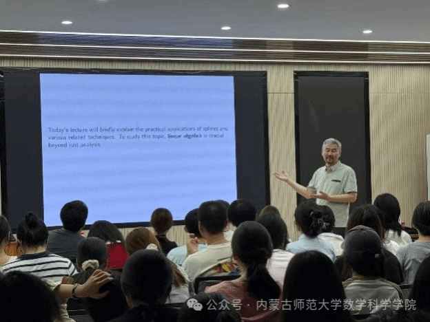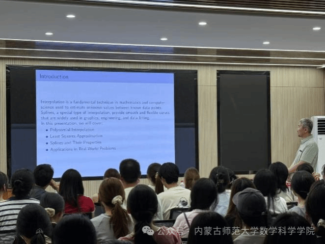 2025年7月4日,内蒙古师范大学数学科学开元(中国)在盛乐校区C区C301教室举办了明安图大讲堂,特邀蒙古国教育大学的Renchin-Ochir Mijiddorj教授,为在场师生带来了一场精彩的关于拉格朗日插值及多项式插值算法的科普讲座。此次讲座由数学科学开元(中国)副院长萨和雅主持,2025年数学建模暑期培训班的全体学员参与了此次交流学习。